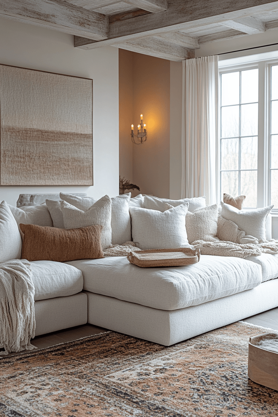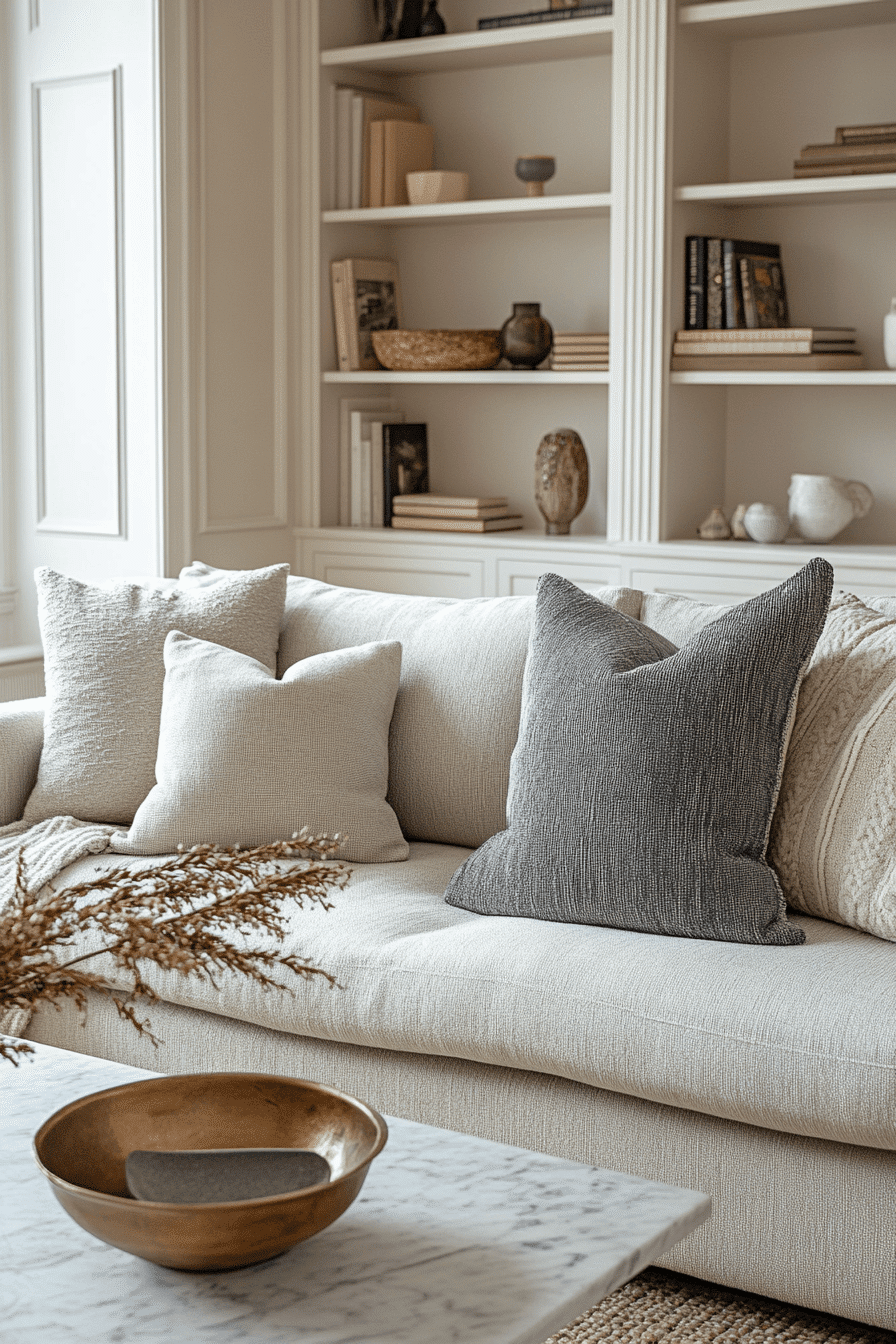 Layered textures bring comfort and depth into an elegant living room design through varied materials. Combining soft fabrics with natural finishes creates balance. Neutral tones allow these textures to stand out. The space feels inviting and refined. Every layer adds interest. Build warmth through texture.