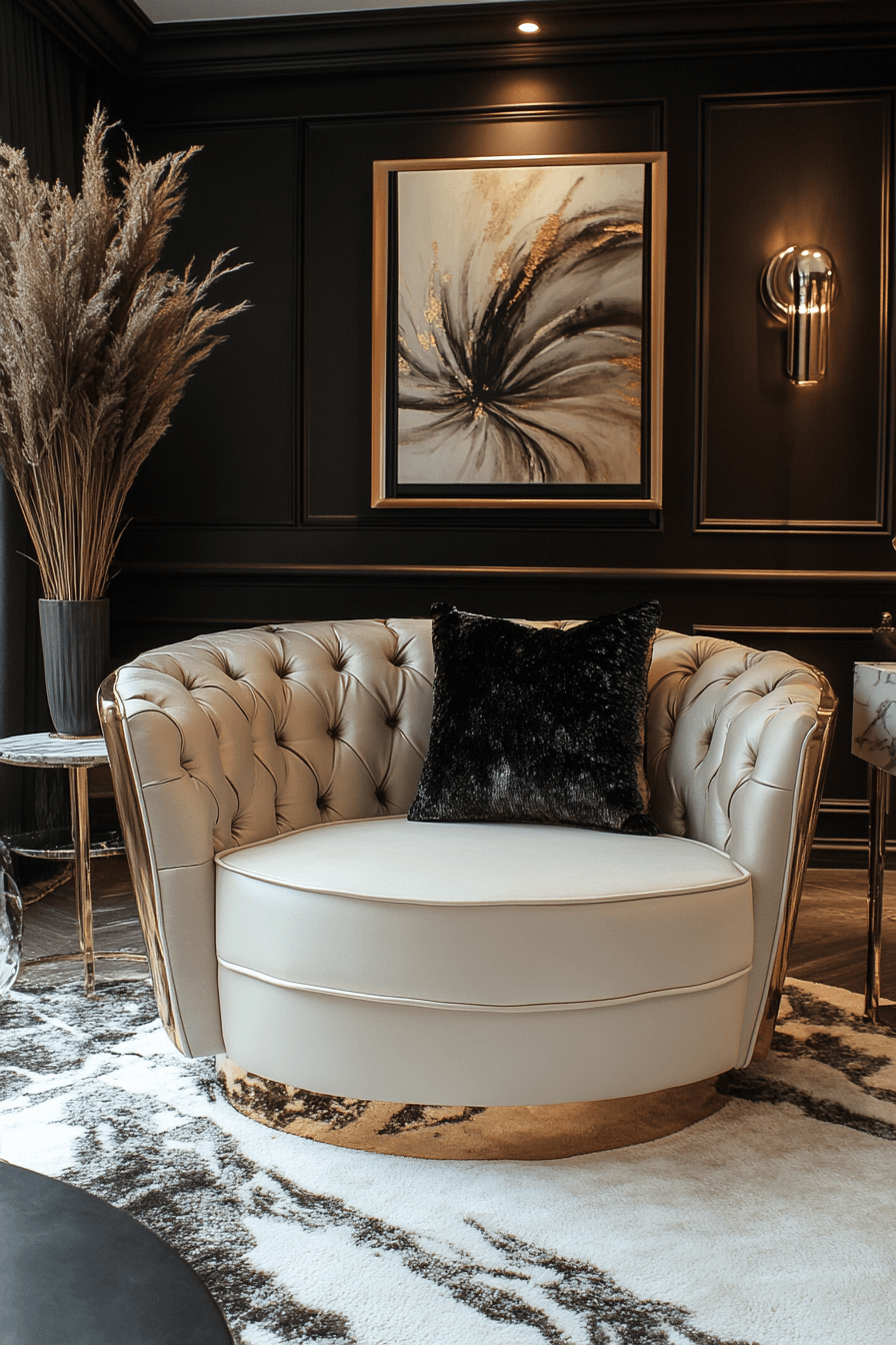 A bold sculptural centerpiece transforms an elegant living room design into a visually striking space. Unique sofa shapes or statement seating instantly draw the eye. Neutral tones keep the focus on form rather than color. Minimal styling ensures balance and clarity. The space feels curated and modern. Create impact with strong silhouettes.