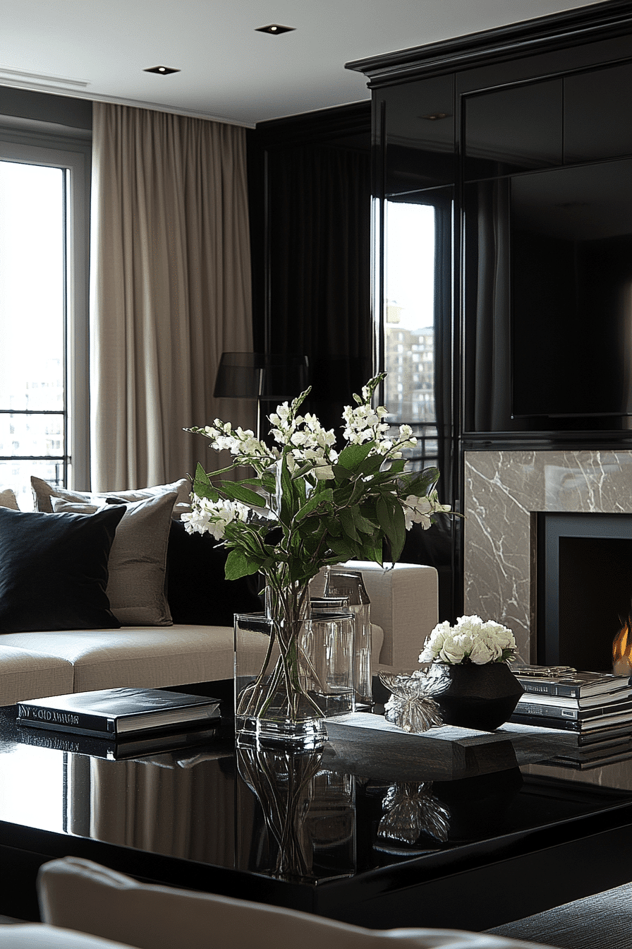 Contrasting tones energize an elegant living room design while maintaining a refined aesthetic. Dark and light elements create visual balance. Subtle accents soften the contrast. The space feels modern and dynamic. This approach adds interest without clutter. Use contrast to elevate your design.
