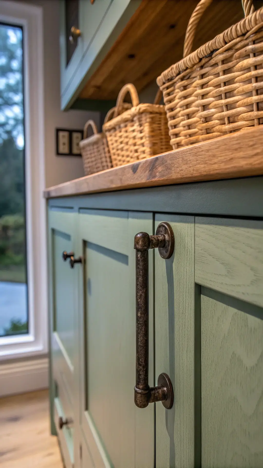 - Use mushroom knobs on cabinet doors