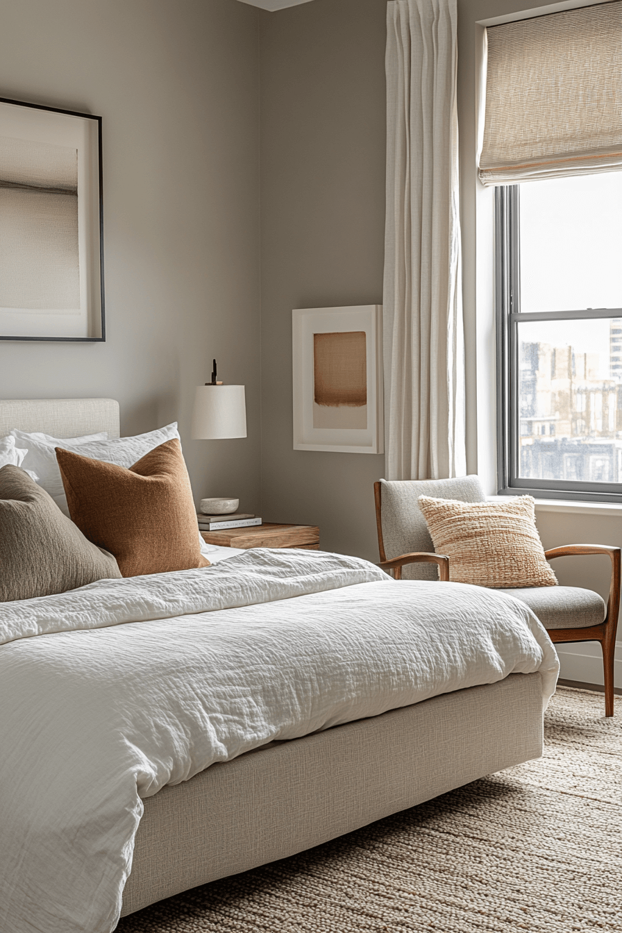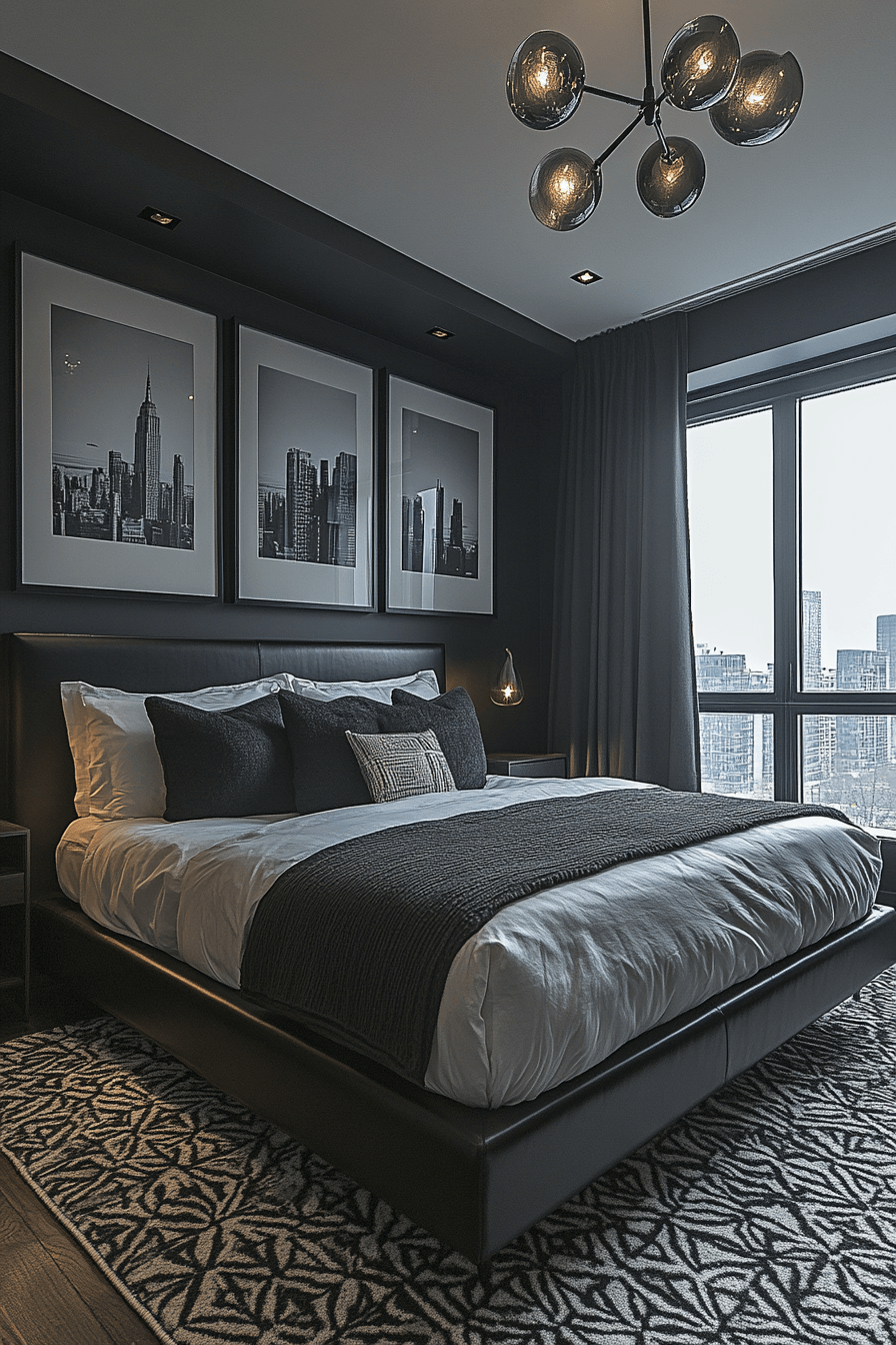 Bold and sophisticated, urban guest room ideas fuse modern artistry with comfort. Monochrome palettes and sleek lines meet pops of color through art and accessories. The mix feels contemporary yet cozy. It’s city living at its most inviting.