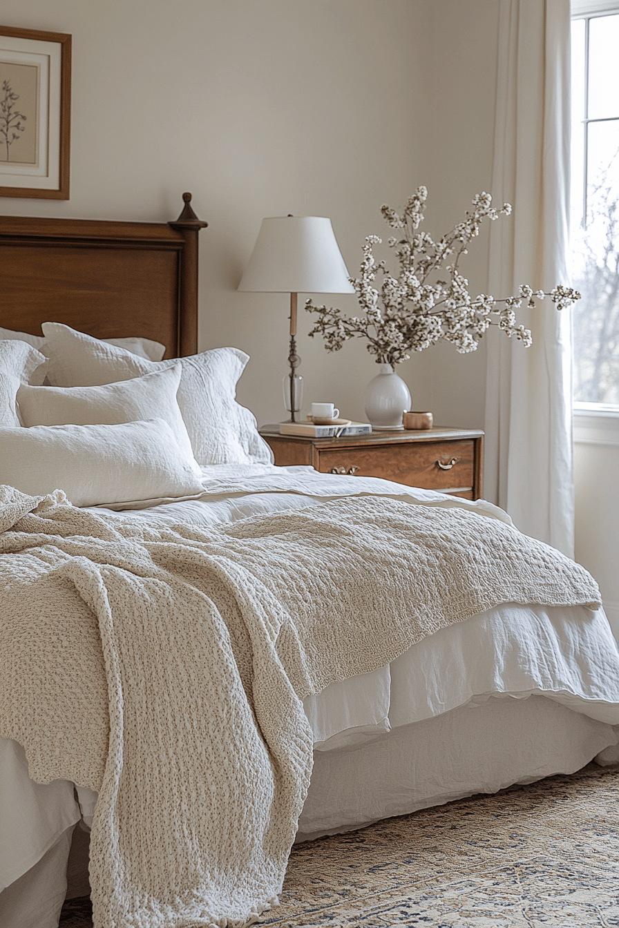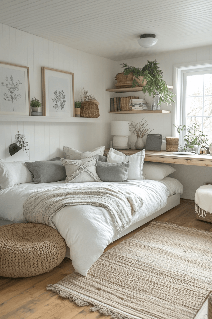 Scandinavian-inspired guest room ideas blend simplicity, warmth, and natural light effortlessly. White walls and blonde wood make the space feel airy and grounded. Cozy knits and layered textures add soft charm. Function meets beauty with ease.