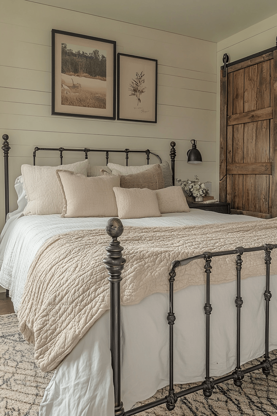 Cozy textures and reclaimed wood bring farmhouse guest room ideas to life. Shiplap walls, patchwork quilts, and vintage finds create layers of warmth. It’s rustic comfort with modern polish. Every corner feels handmade and heartfelt.