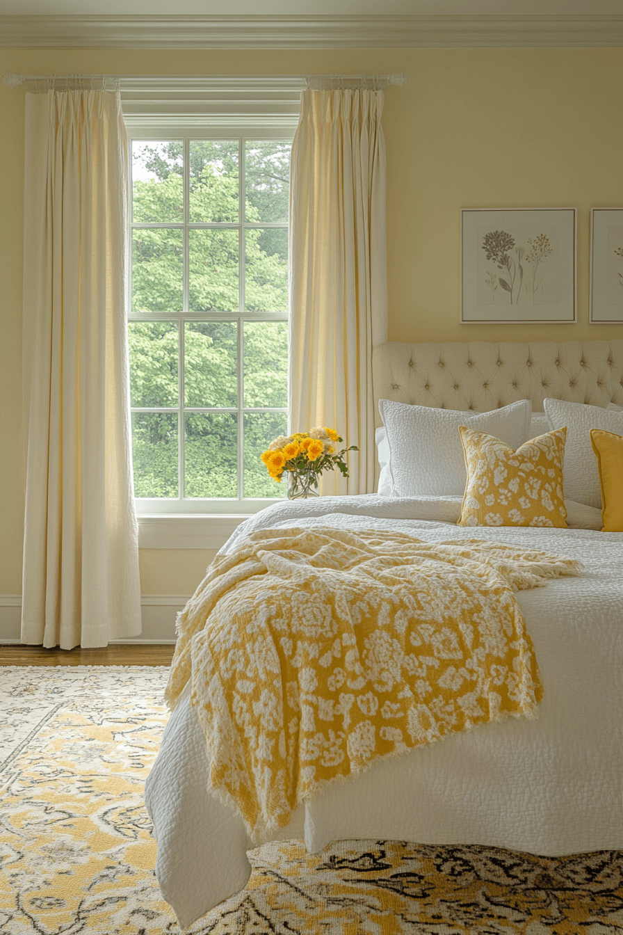 Bright, airy, and endlessly uplifting — these light-filled guest room ideas transform any corner into sunshine. Sheer curtains, white tones, and touches of gold create a fresh, open mood. The simplicity feels joyful and refined. It’s comfort bathed in light.
