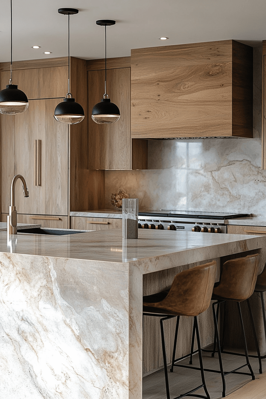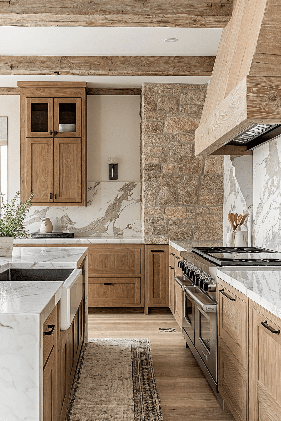 Pairing stone with hickory kitchen cabinets creates a balanced contrast between cool and warm elements. The materials complement each other beautifully. Hickory kitchen cabinets add depth while stone surfaces add elegance. The space feels polished and timeless. It works across many styles. Blend materials for a sophisticated finish.
