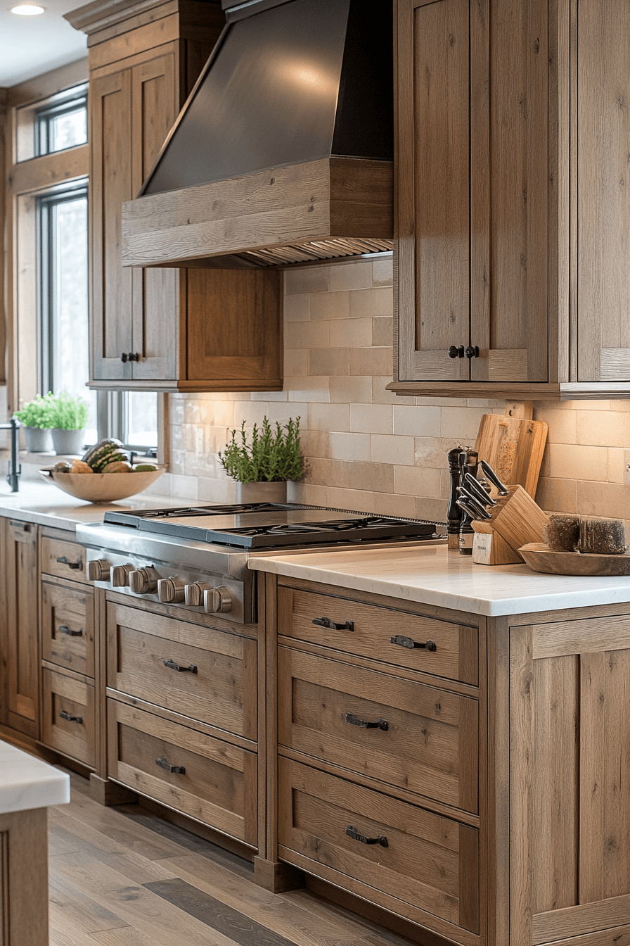Hickory kitchen cabinets bring unmatched character and durability to your kitchen with their distinctive grain patterns and warm natural tones. These ideas show how this beautiful hardwood can create a kitchen that feels both rustic and refined, standing up to daily use while growing more beautiful over time.