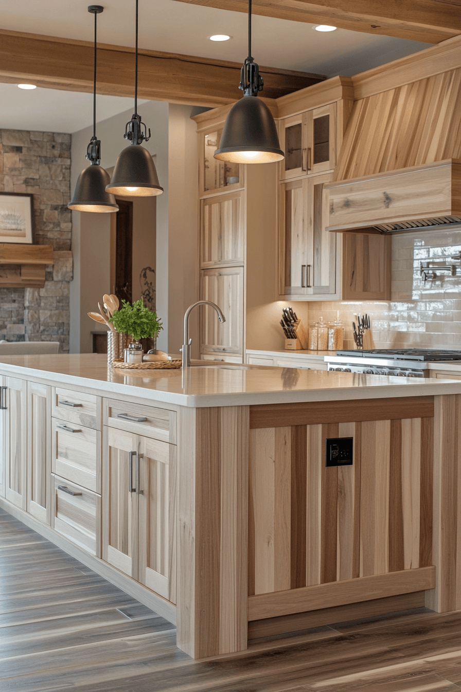 Highlighting an island with hickory kitchen cabinets creates a bold focal point in the kitchen. The rich grain draws the eye instantly. Hickory kitchen cabinets make the island stand out beautifully. Pairing with contrasting elements enhances the design. The space feels functional and stylish. Make your island the star of your kitchen.