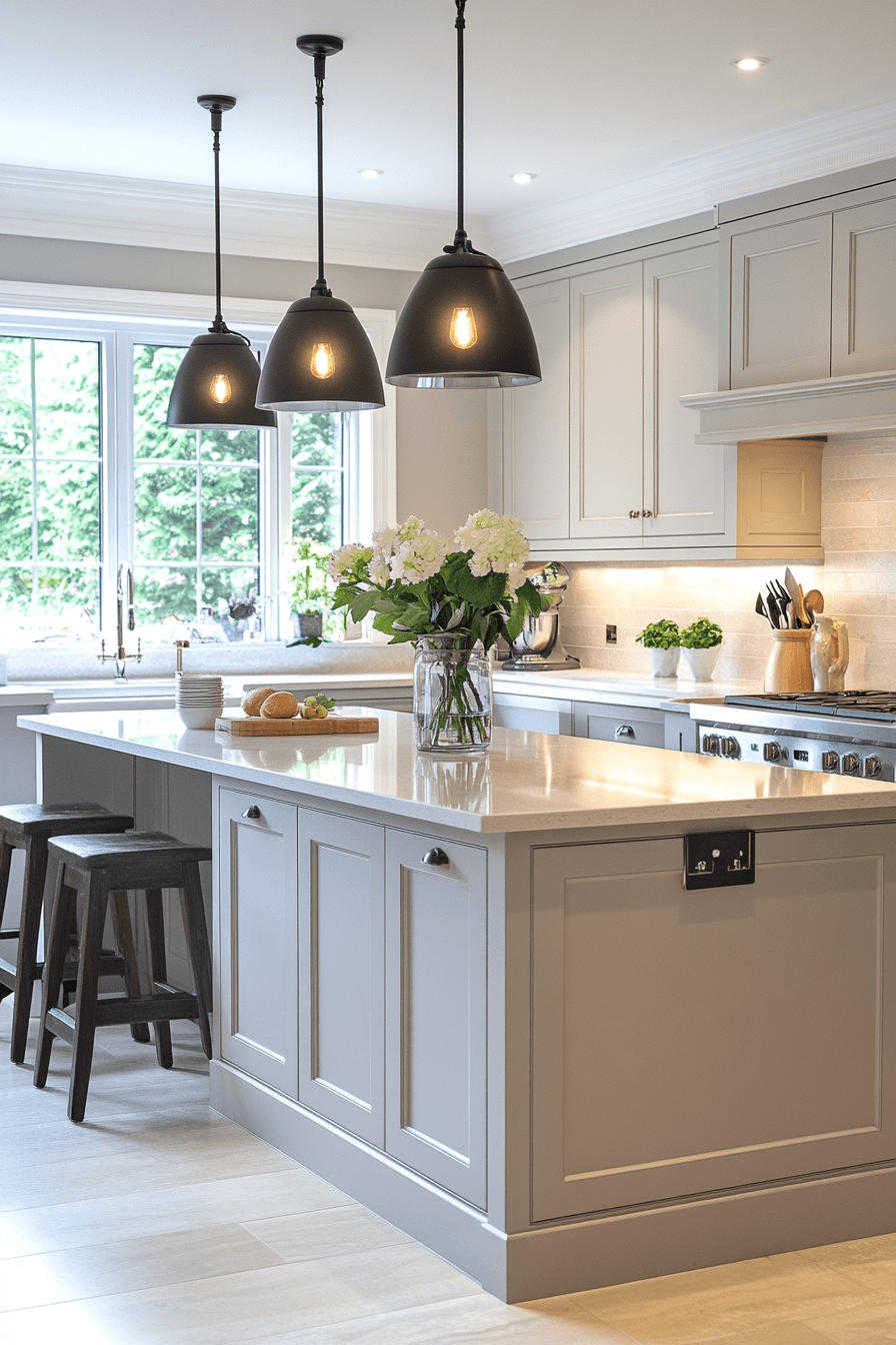 White pairings highlight light grey kitchen cabinets with fresh contrast that feels timeless. Bright tones enhance openness and clarity. Light grey kitchen cabinets ground the design while white lifts it. The combination works across many styles. The space feels clean and inviting. Refresh your kitchen with this pairing.
