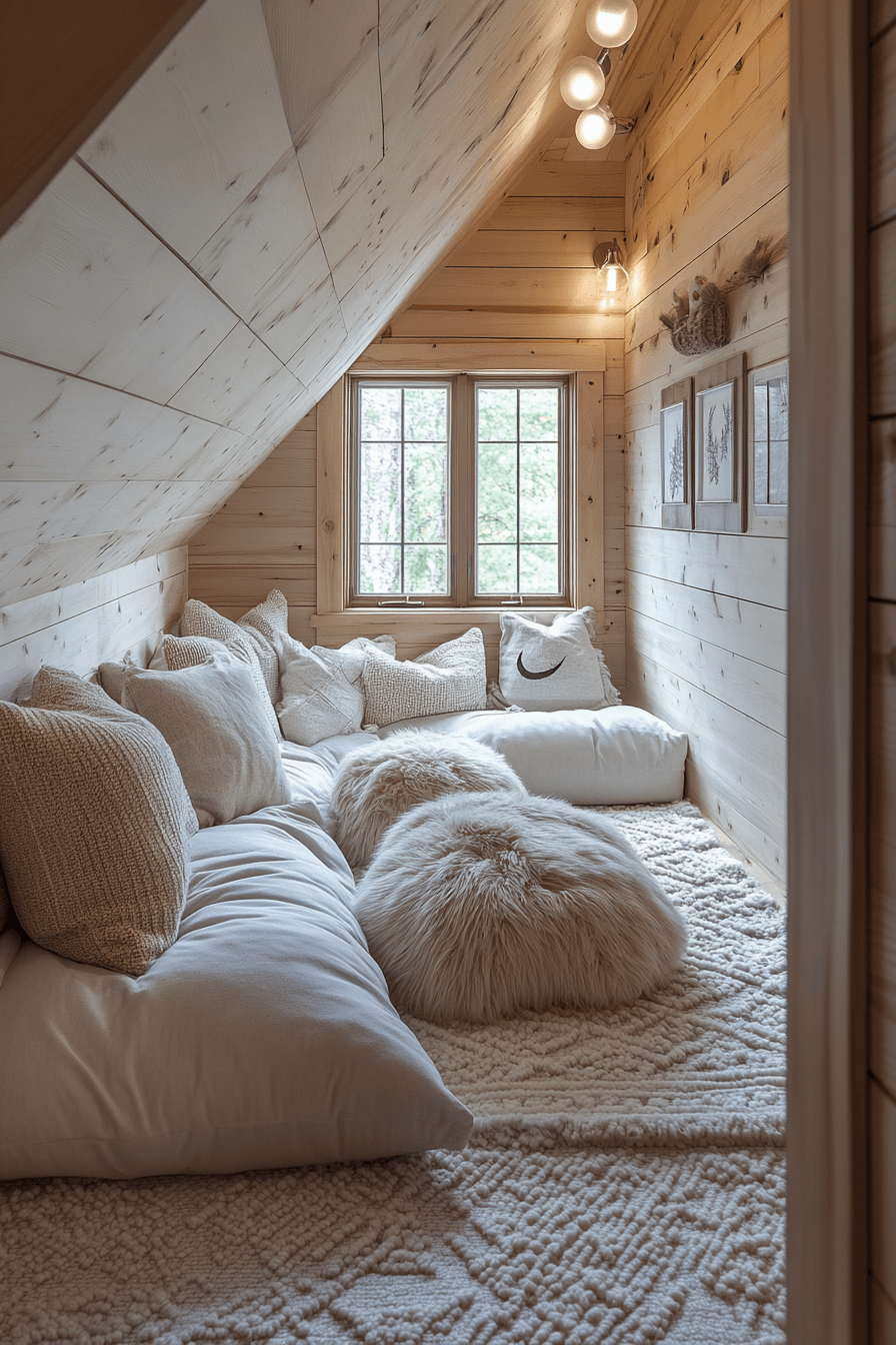 This peaceful little cabin living room feels like a deep exhale for the soul. Gentle light filters through wooden accents, wrapping the space in stillness. The minimalist décor keeps focus on calm and clarity. Every breath here feels restorative.