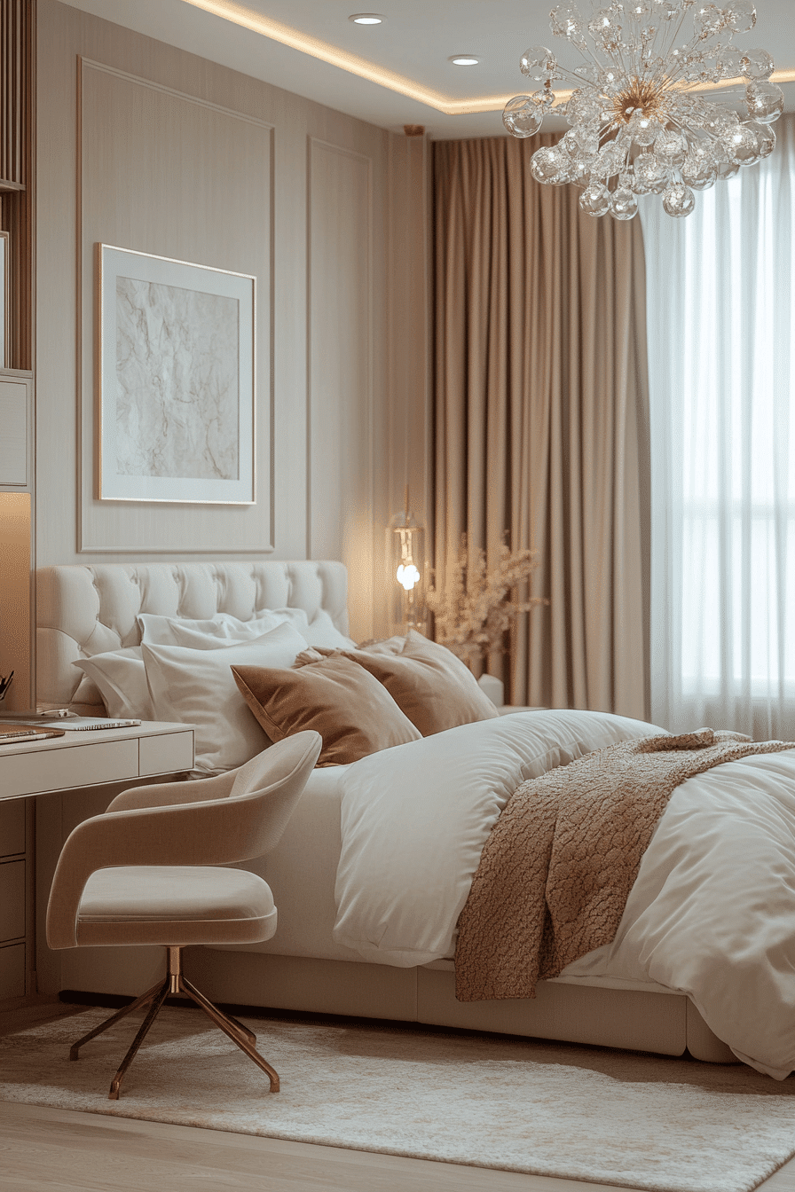 A soft-toned luxury kids bedroom can feel peaceful, elegant, and effortlessly stylish all at once. Creamy neutrals, pale blush, and gentle gray shades create a delicate palette that instantly calms the room. Upholstered pieces and reflective accents add sophistication while still keeping the space relaxed and child-friendly. Textured fabrics and subtle decorative details help the design feel timeless rather than trendy. Every corner feels restful, polished, and beautifully balanced. Find more soothing room inspiration and create a space that feels wonderfully serene.