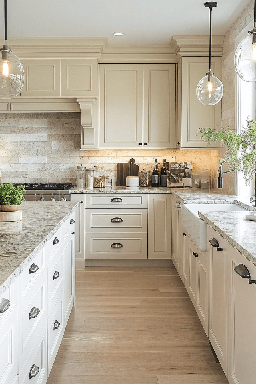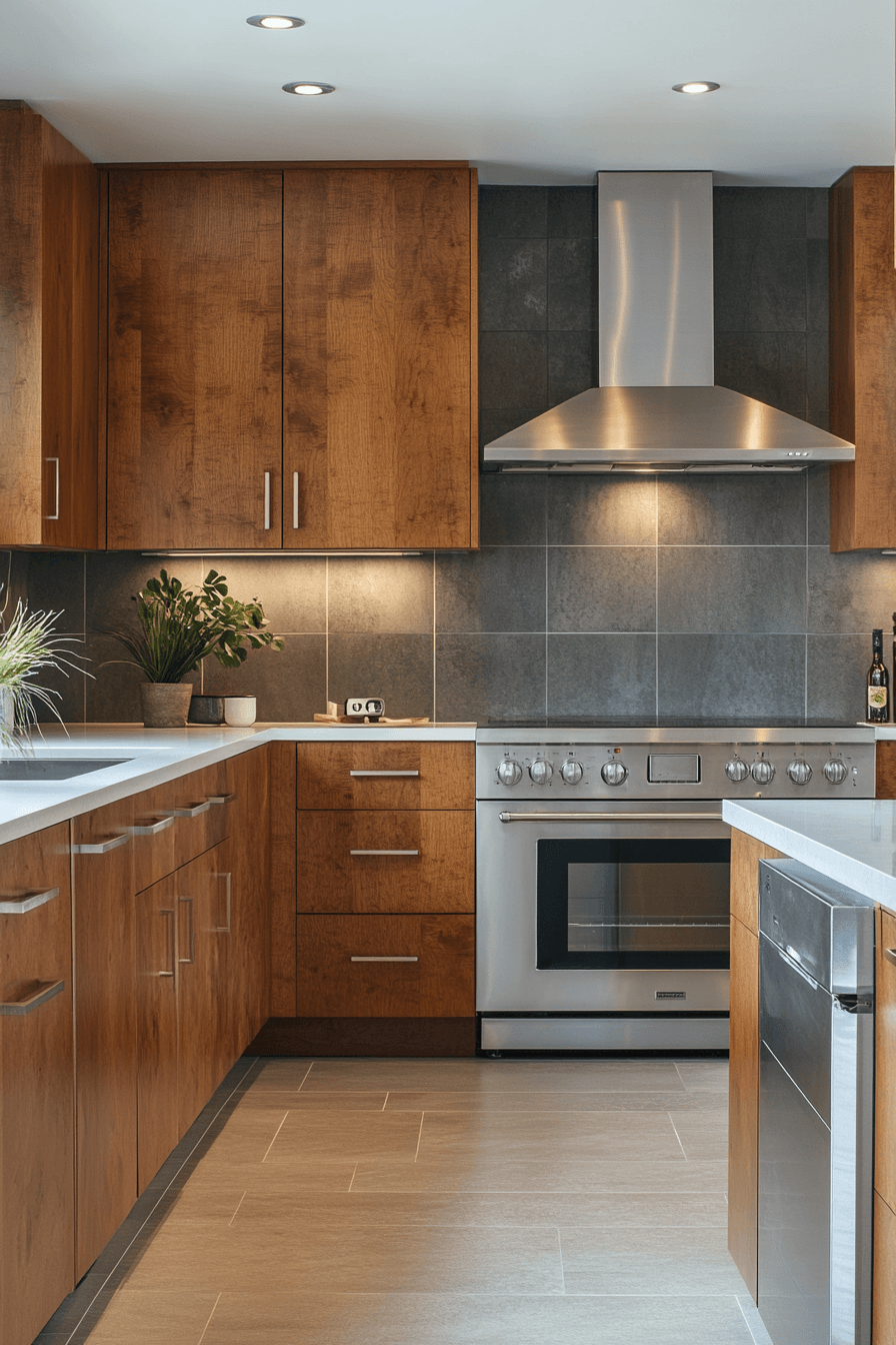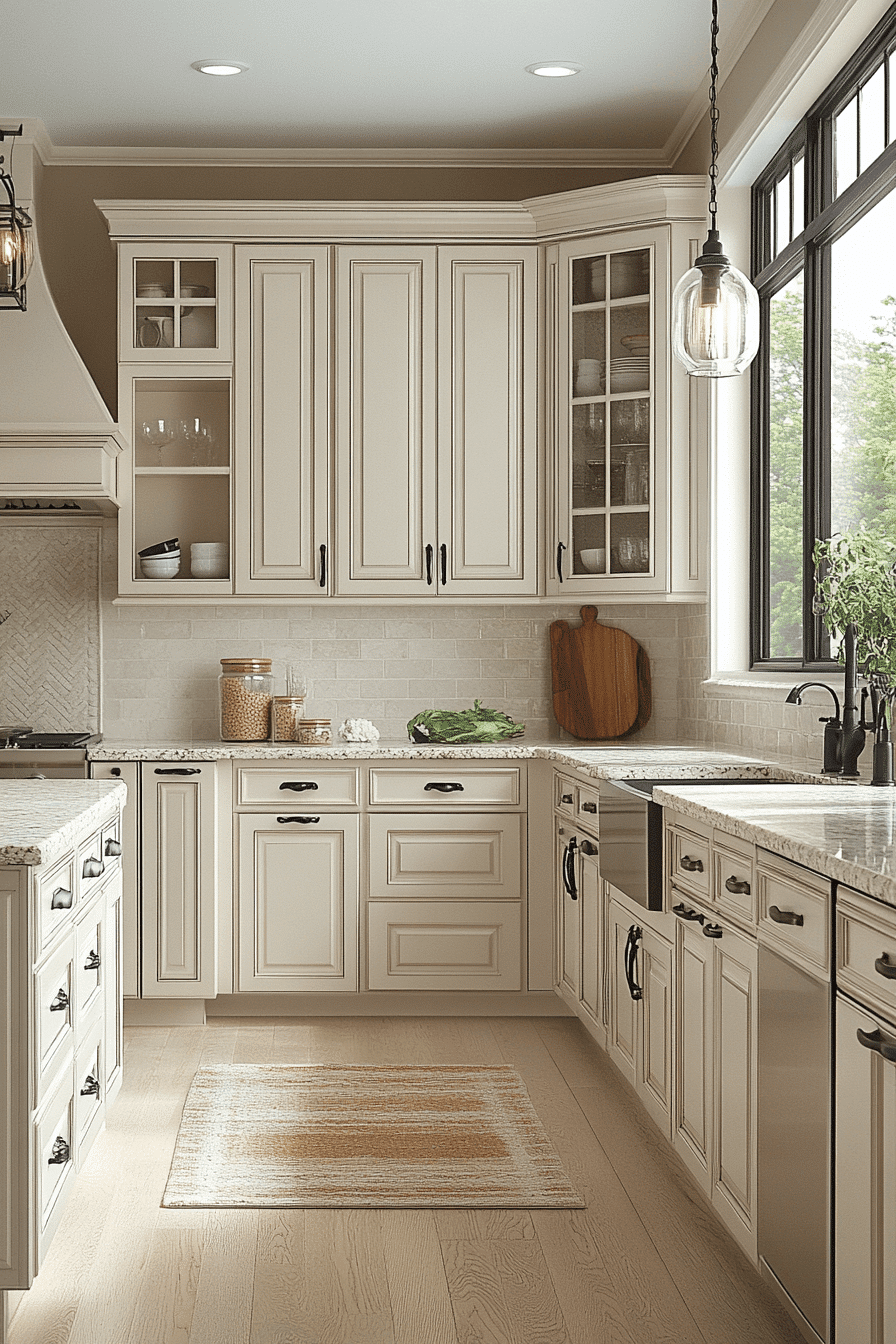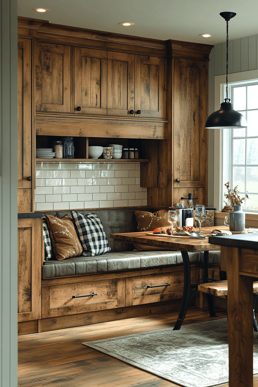Rustic-leaning maple kitchen cabinets bring natural comfort into the kitchen while still looking refined and polished. The soft grain and wood character add depth without making the room feel rough or unfinished. Balanced craftsmanship keeps the cabinetry looking elevated and intentional. Stone counters, muted metals, and vintage-inspired touches help complete the look beautifully. This style feels cozy without ever losing its sophistication. Explore more rustic-modern kitchen ideas and bring warm charm into your design.