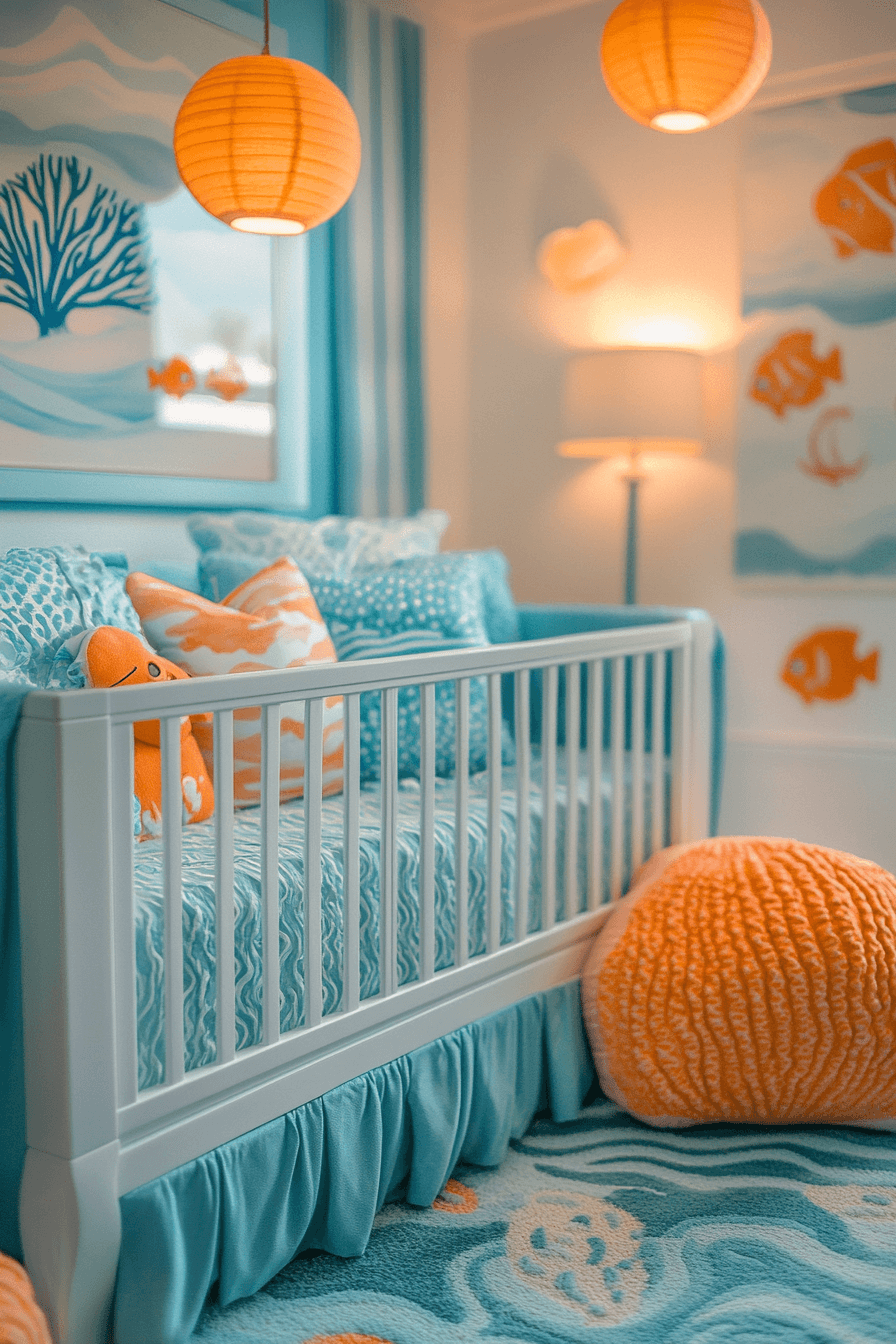 Create a playful underwater theme with nursery room decor that feels both calming and imaginative. Ocean tones and aquatic details bring the space to life. The design feels peaceful yet engaging. Subtle accents keep everything balanced. The room feels fresh and fun. Dive into creativity with these nursery room decor ideas.