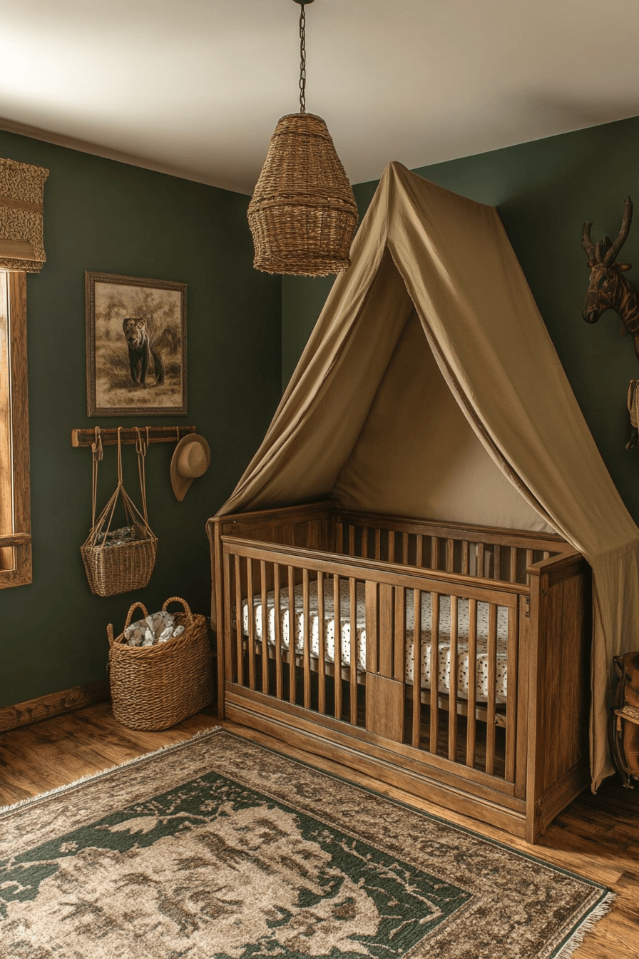 Bring adventure into your nursery with nursery room decor inspired by jungle themes. Animal prints and natural patterns add energy and excitement. Earthy tones balance the playful elements beautifully. The design feels fun yet cozy and welcoming. It sparks curiosity while staying practical. Create an adventurous space with these nursery room decor ideas.