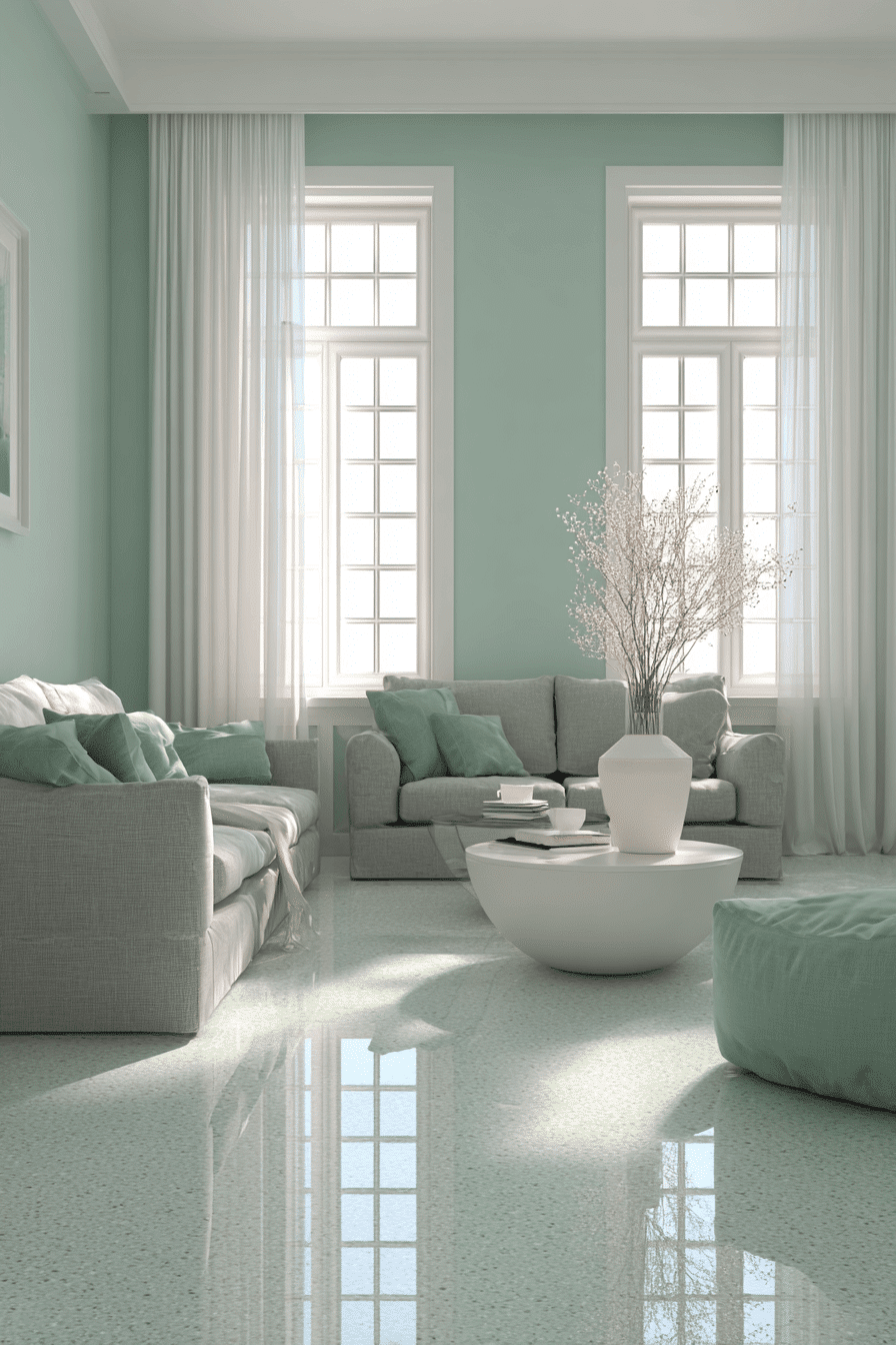 Sunlight can make these muted shades look much more luminous and uplifting. A sage green and grey living room feels especially airy when pale green walls and light grey furniture reflect natural light across the space. Sheer curtains, glass surfaces, and a few warm accents help everything glow more gently. The palette stays calm while still feeling bright and alive. The room feels breezy, peaceful, and beautifully open. Let natural light shape this palette in your home and enjoy the transformation.