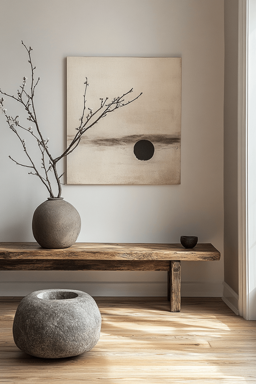 The entry hall glows with the mindful simplicity of a Scandinavian Japanese interior. Light wood tones, clean shapes, and warm lighting make it both beautiful and practical. Every piece serves a purpose, adding ease and grace to your home’s first impression. It feels effortless yet intentional.