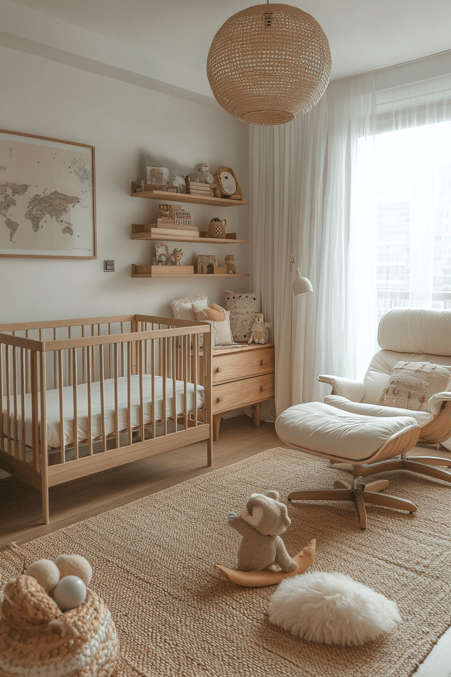 Designed with soft care, this nursery blends Scandinavian Japanese interior harmony with gentle warmth. Neutral hues, natural wood, and plush fabrics create an environment where calm and comfort meet. The space feels airy, nurturing, and safe. Every detail supports tranquility for both baby and parent.