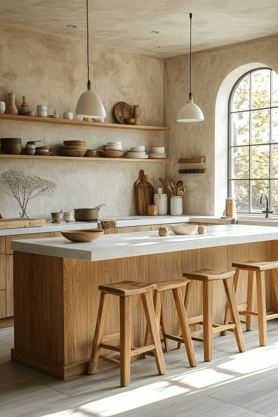 This kitchen glows with the effortless charm of a Scandinavian Japanese interior. Pale wood cabinetry, smooth stone textures, and clean design bring both warmth and clarity. Every feature is purposeful, keeping beauty and function perfectly aligned. Sunlight flows across every surface, highlighting simplicity in motion.