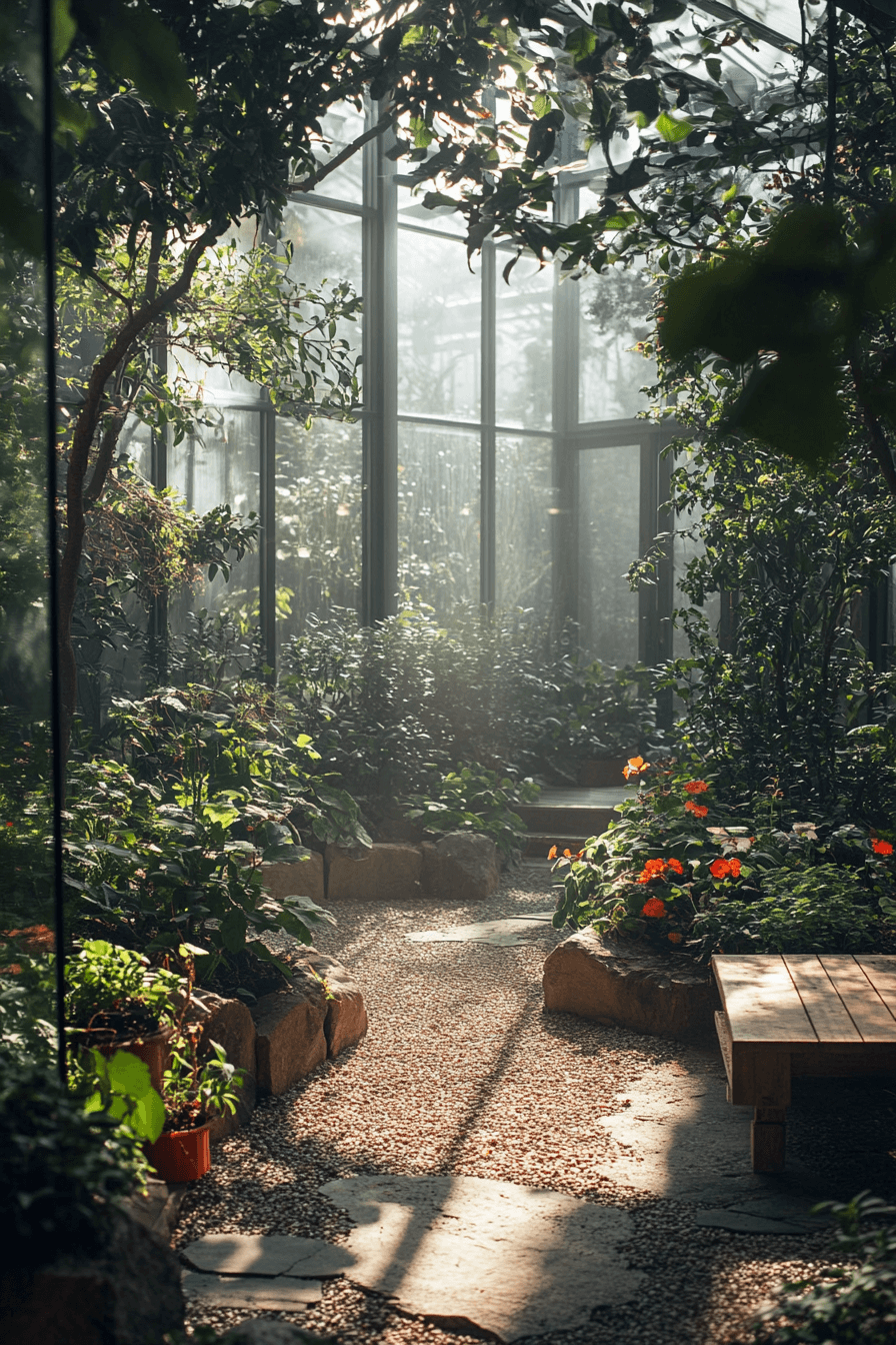 Nature meets elegance in this winter garden inspired by Scandinavian Japanese interior style. Simple furniture, glass walls, and fresh greenery connect the indoors to calm outdoor energy. Even in colder months, the space radiates warmth and renewal. The design feels pure and refreshing.