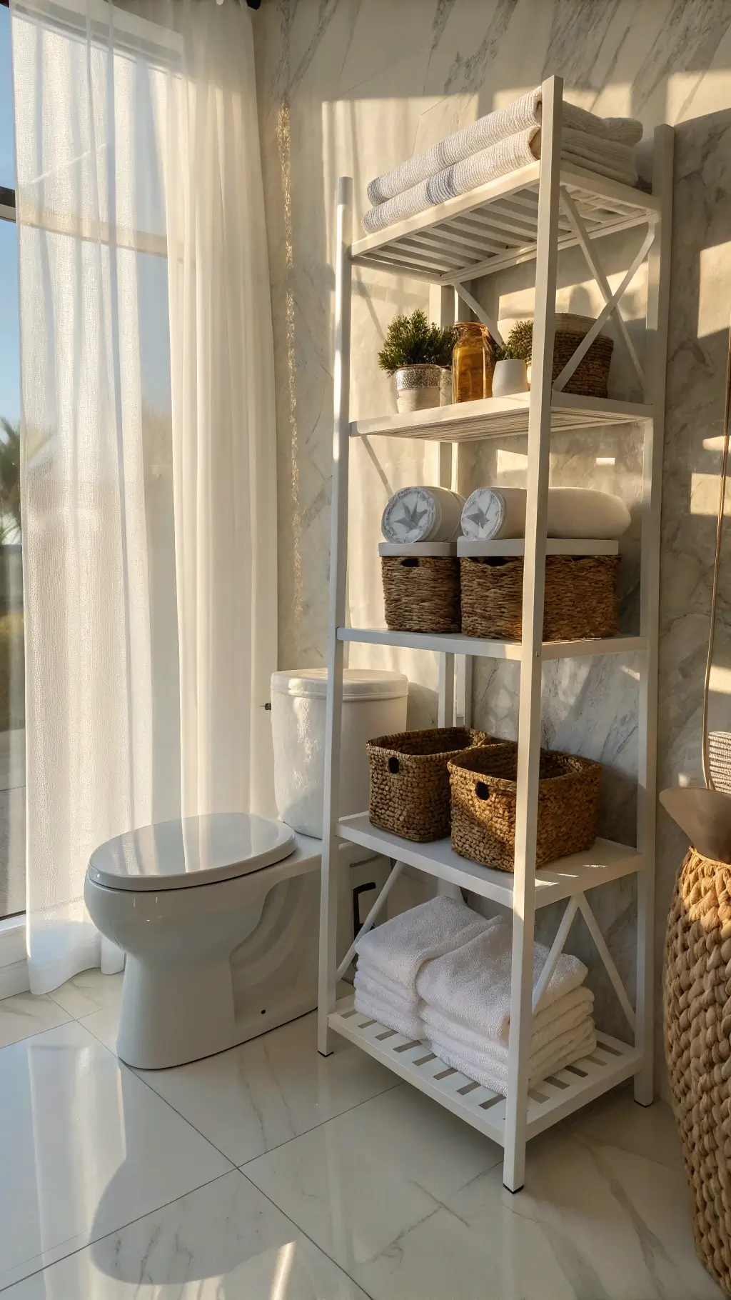 Small bathrooms are like puzzle boxes. Every inch counts. Vertical shelving isn’t just a storage solution—it’s a total game-changer.