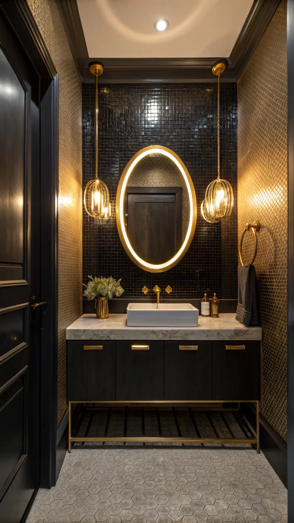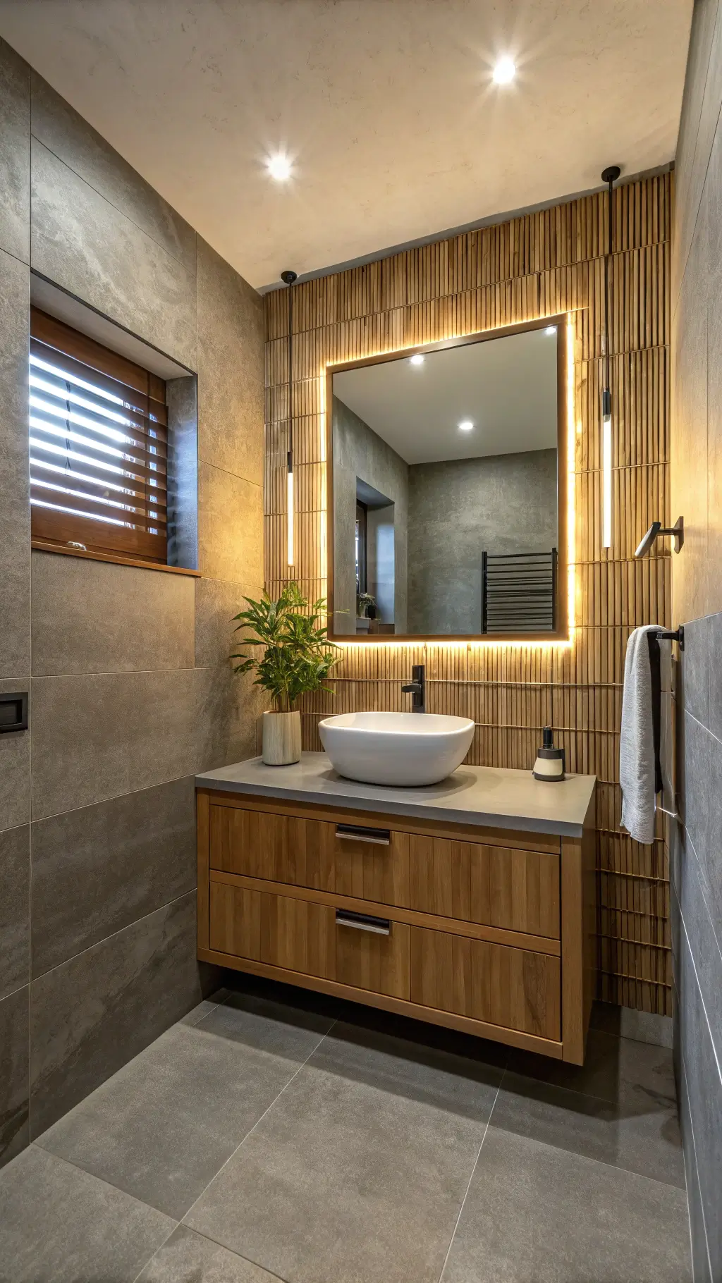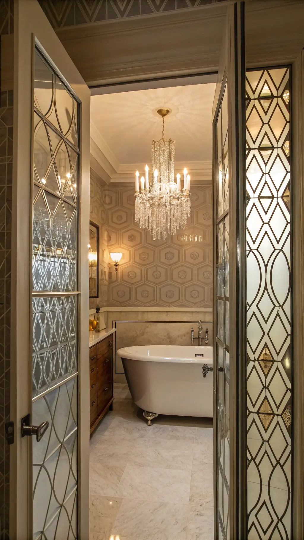 - Add accent lighting near mirrors