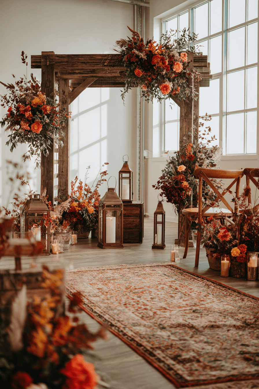 Warm autumn tones bring richness into small wedding ideas with a cozy, seasonal feel. Deep colors and rustic textures create a welcoming atmosphere. Natural surroundings enhance the beauty effortlessly. Lanterns and details add depth and charm. The celebration feels vibrant and intimate. Capture the essence of fall.