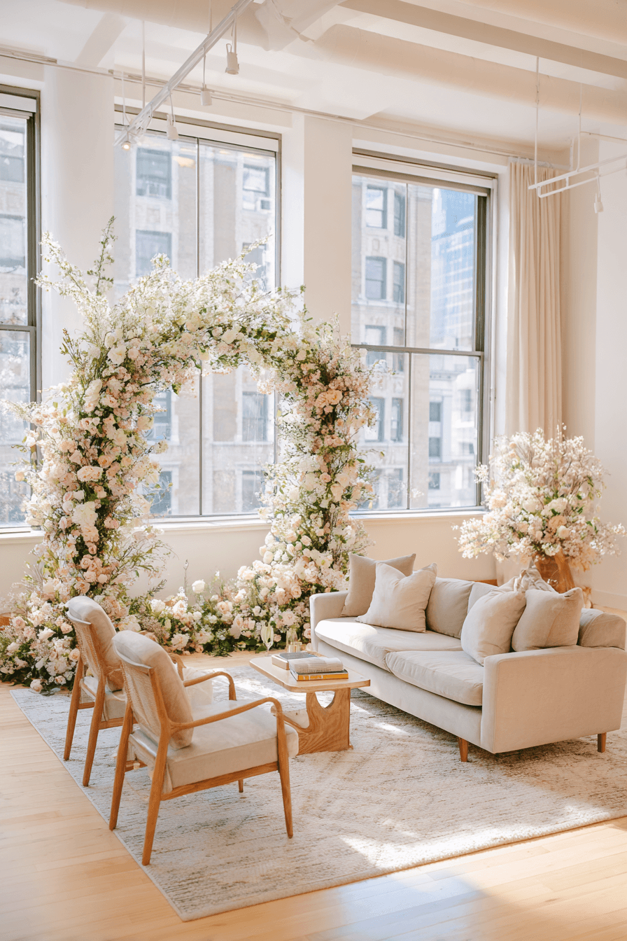 Abundant blooms transform small wedding ideas into a lush, romantic experience. Layered florals create a garden-like atmosphere anywhere. Soft colors and textures add depth and beauty. The space feels vibrant and full of life. It’s a celebration filled with joy and color. Surround your day with flowers.