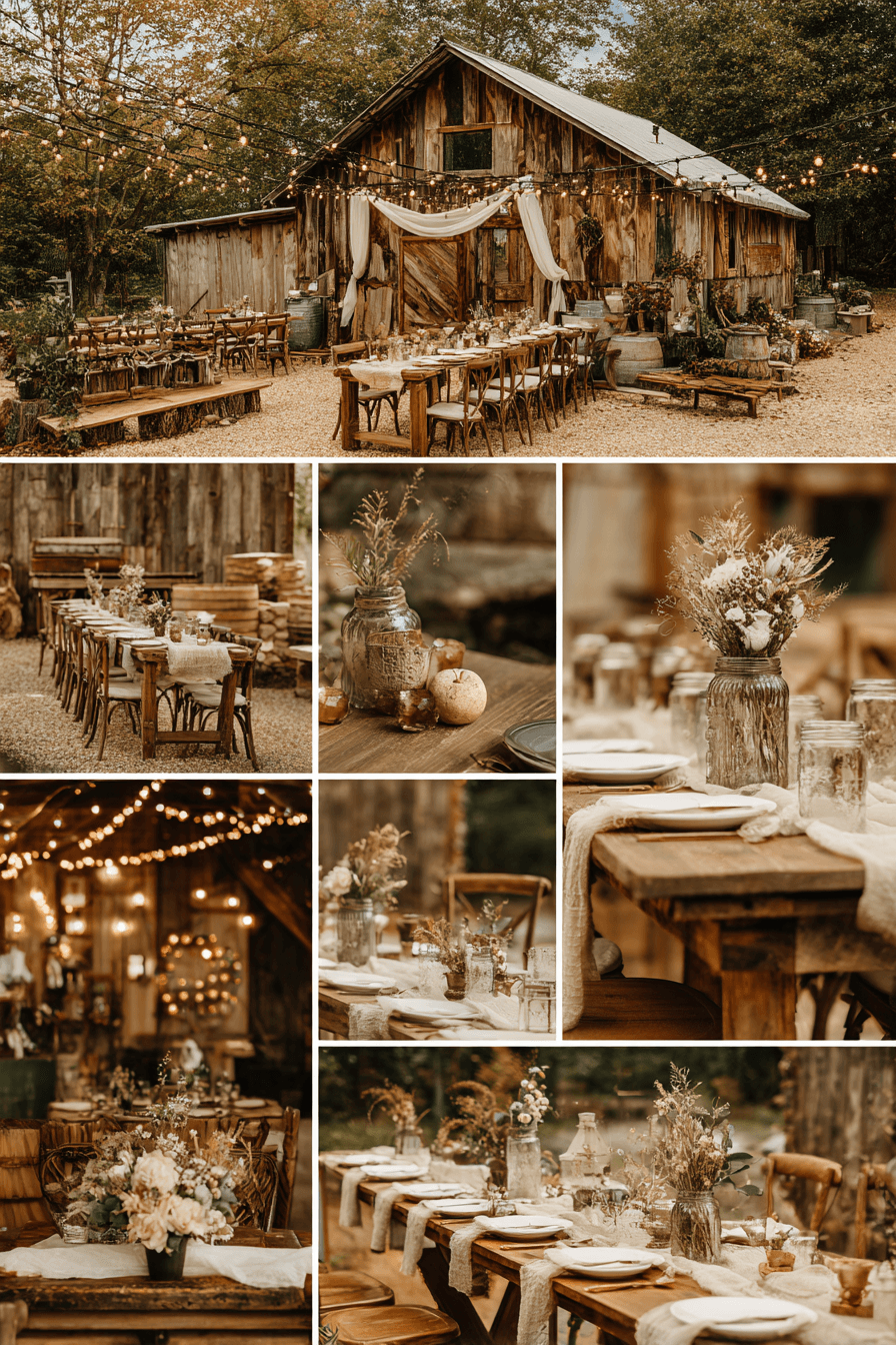 Natural textures and warm lighting make small wedding ideas feel inviting and heartfelt. Wooden accents and soft fabrics create a relaxed countryside vibe. String lights add a soft glow that enhances the cozy atmosphere. Simple decor keeps everything grounded and romantic. It’s a celebration filled with comfort and charm. Create your own rustic moment.