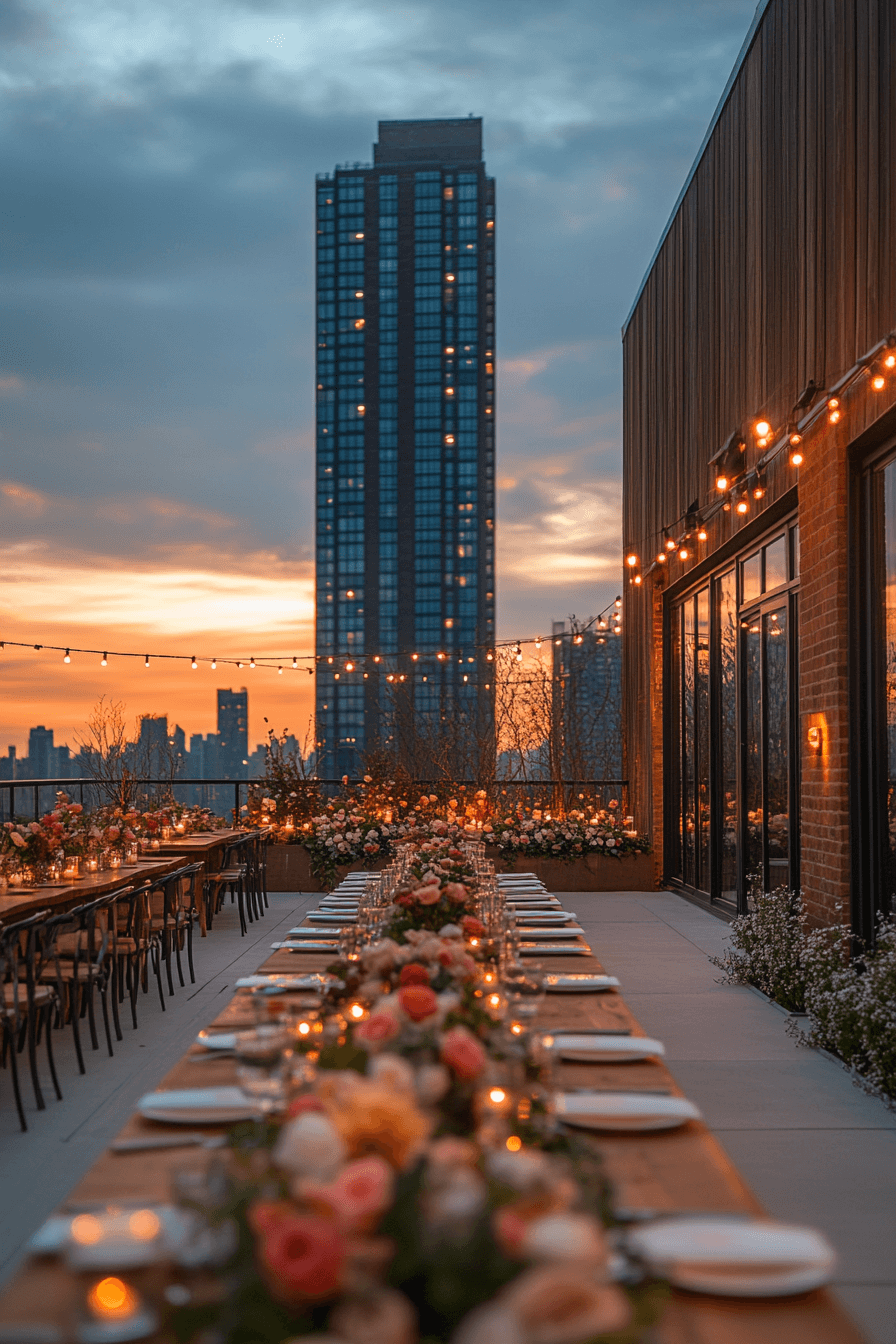 City venues bring a sleek edge to small wedding ideas while keeping the celebration intimate. Clean lines and refined decor create a polished, modern look. Rooftop or loft spaces add stunning visual appeal. Subtle lighting enhances the elegant atmosphere. The result feels stylish and sophisticated. Step into a modern city celebration.