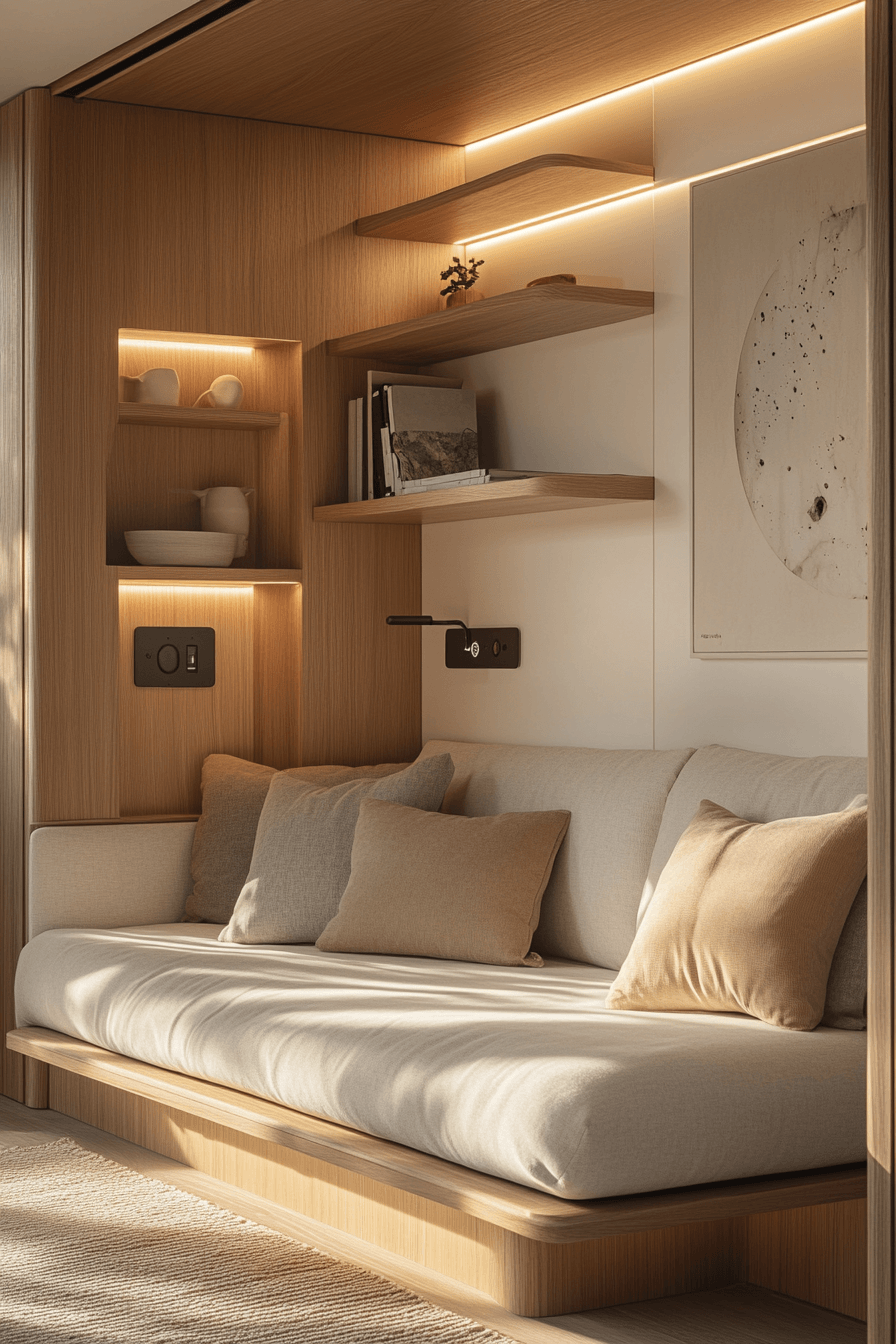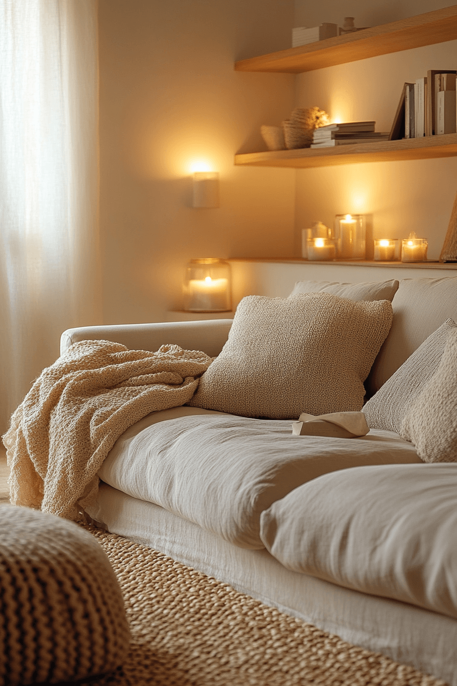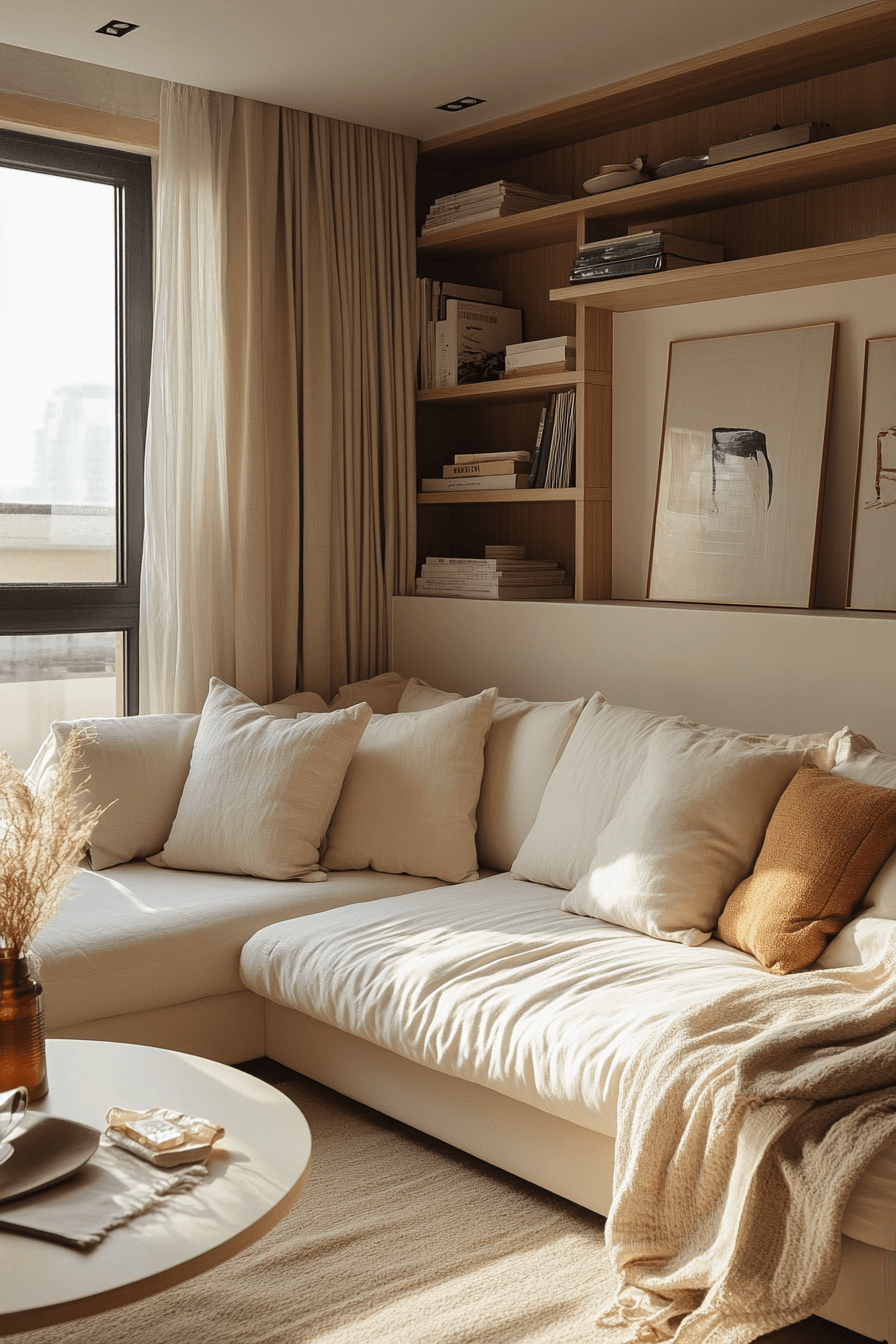 Texture can add depth and warmth without adding clutter. A layered sofa bed living room uses fabrics like linen, boucle, and soft weaves for a cozy feel. Neutral tones keep everything cohesive. Lighting highlights textures beautifully. The space feels inviting and refined. Add dimension to your living space with texture.
