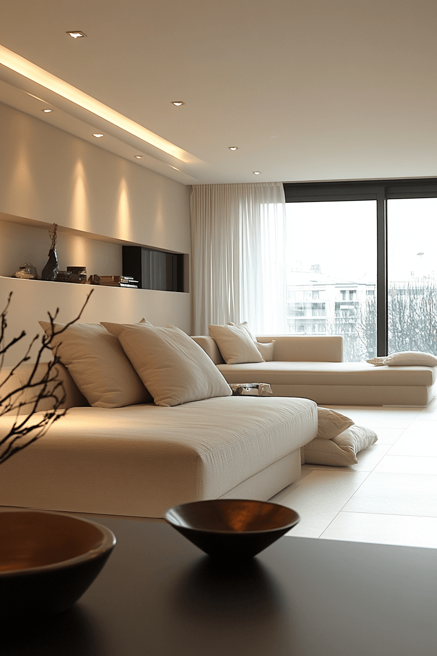 A single color palette can create a strong visual impact. A monochrome sofa bed living room uses varying tones to build depth and interest. Clean lines keep the look modern. Accent lighting adds contrast. The space feels curated and cohesive. Try this bold yet simple design approach.
