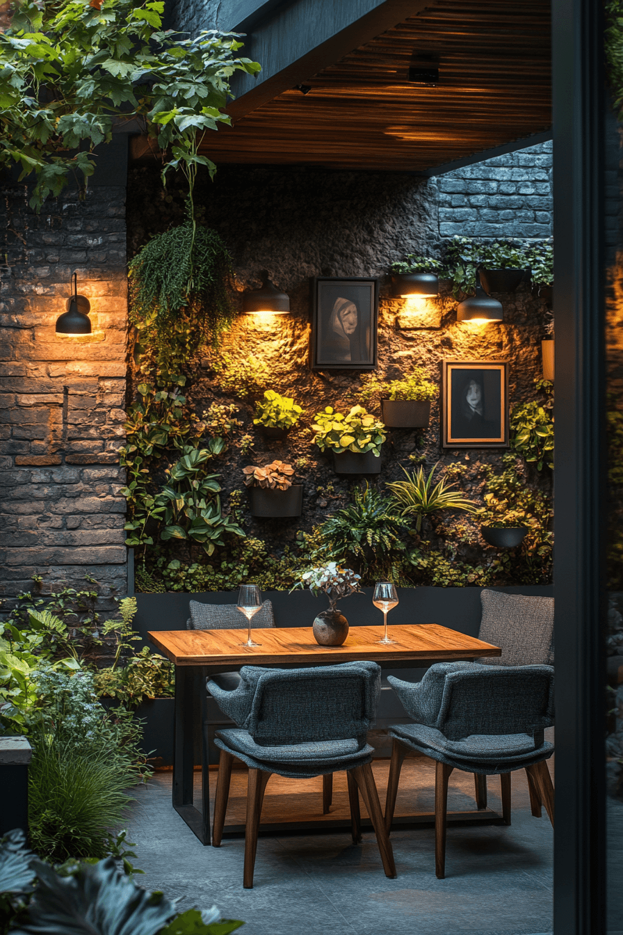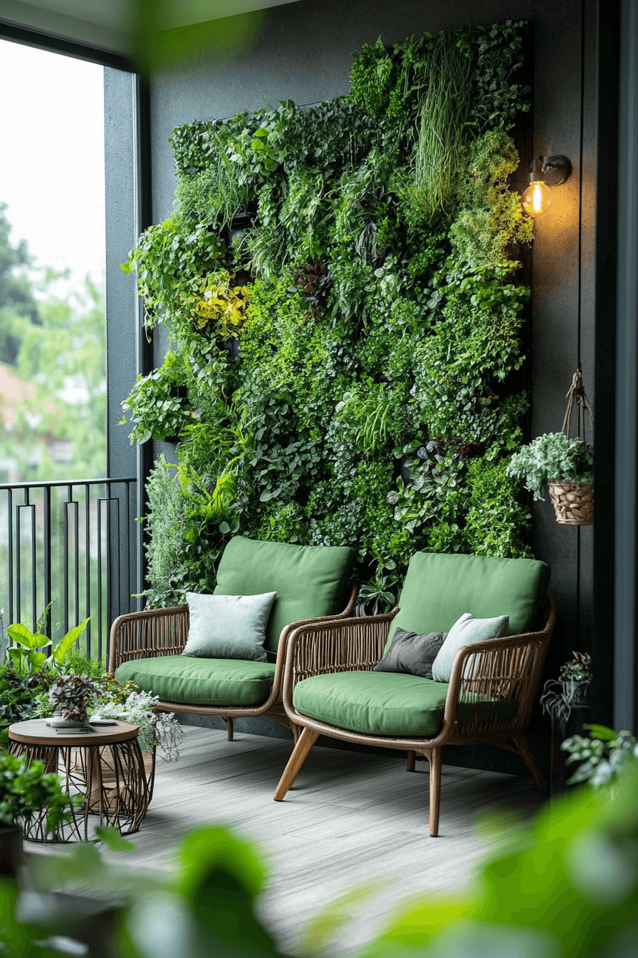 Vertical planting transforms a tiny apartment patio ideas space into a lush, green feature wall full of life. Stacked planters create depth and texture without using floor space. Minimal furniture keeps the focus on greenery. The space feels vibrant and refreshing. Ideal for small patios needing a big visual impact. Elevate your patio with vertical garden ideas that stand out.
