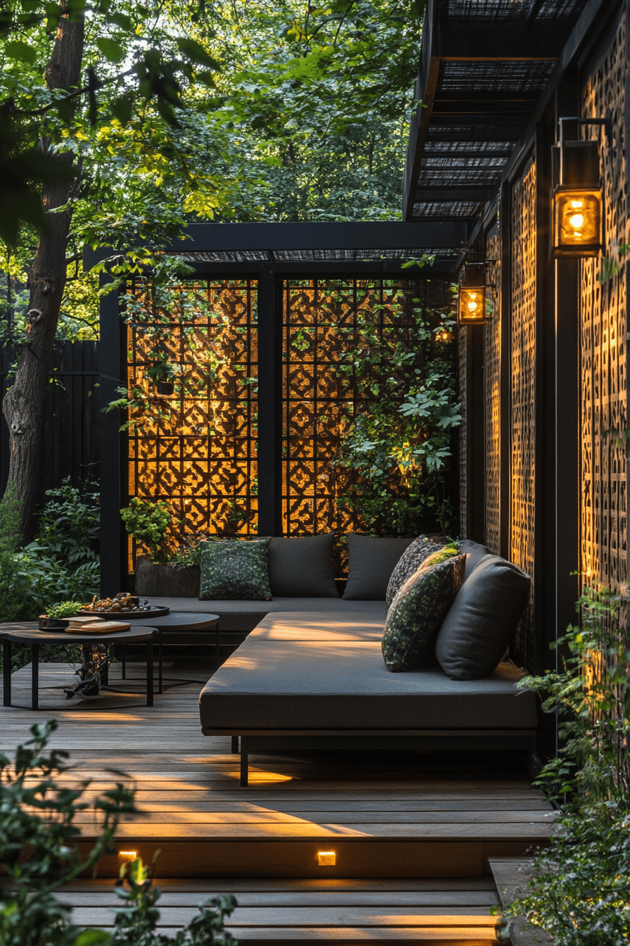 Privacy-enhancing features elevate a tiny apartment patio ideas layout into a secluded and comfortable retreat. Decorative screens add style while blocking outside distractions. The space feels cozy and more intimate. Perfect for relaxing without interruption. Small changes create a big difference in comfort. Turn your patio into a private outdoor escape.