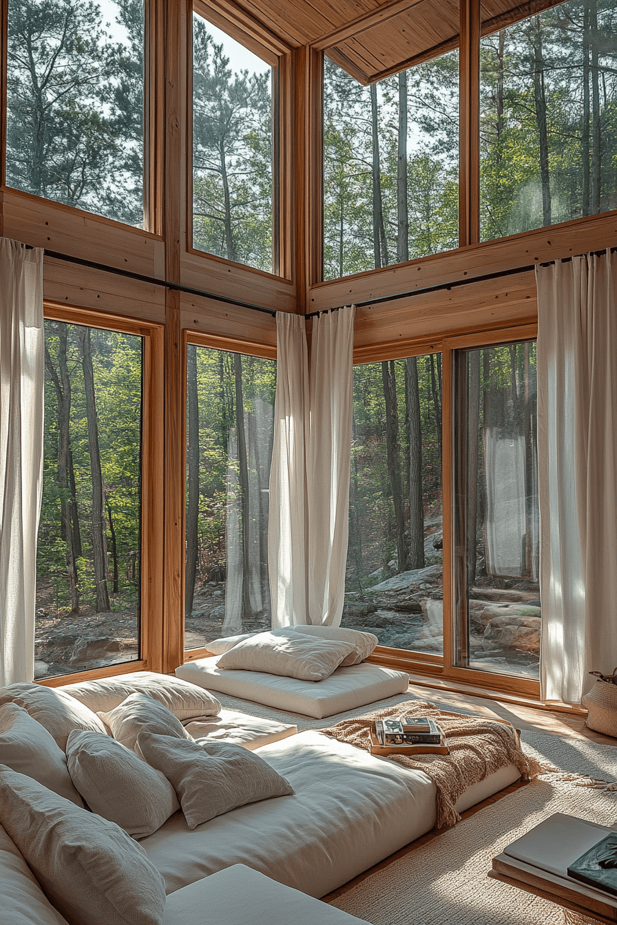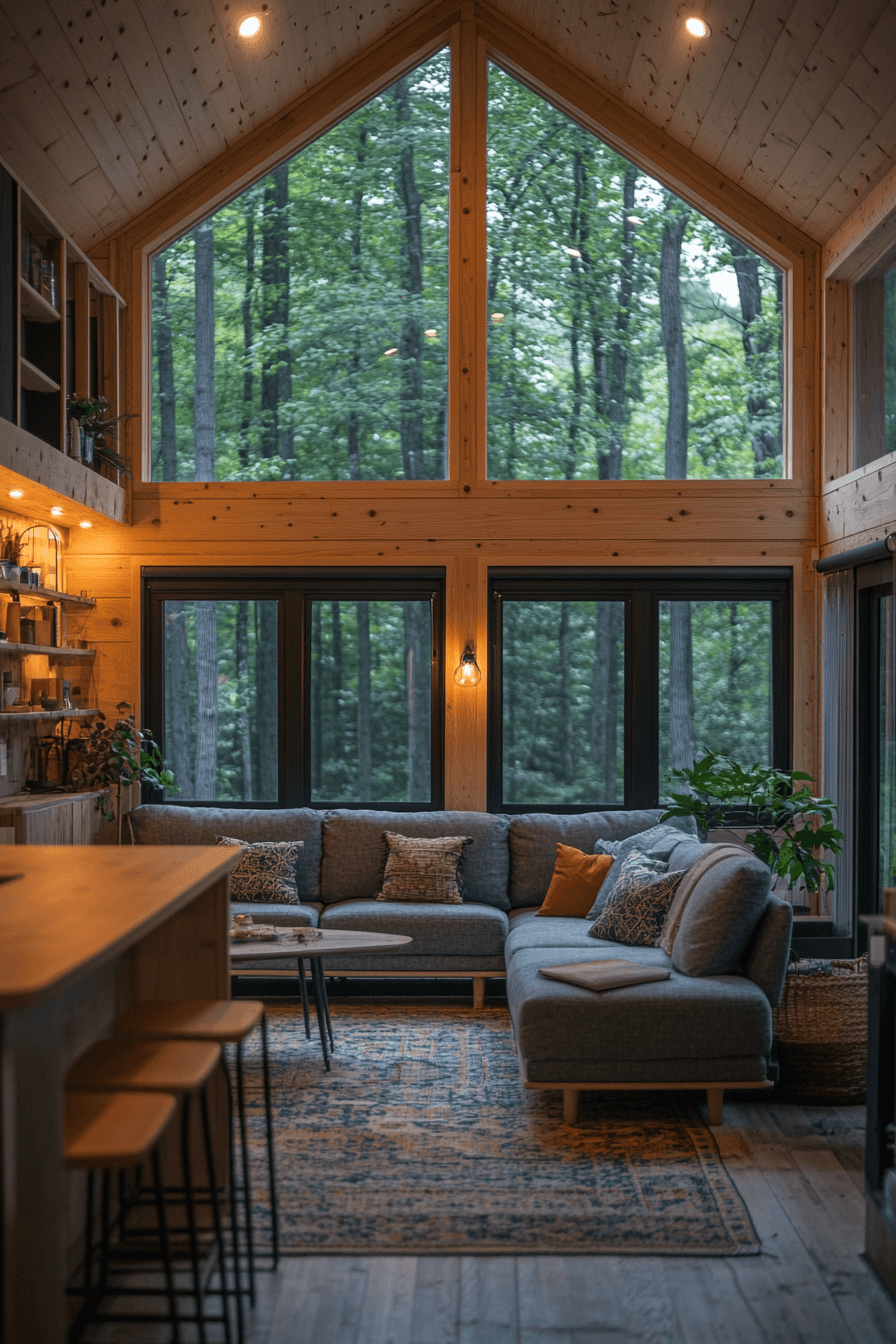 Natural light enhances tiny cabins interiors by making them feel more open and connected to the outdoors. Large windows and skylights bring in brightness and fresh air. Minimal coverings keep the look clean. The space feels airy and expansive. Light adds comfort and energy. Bring more sunlight into your cabin with thoughtful design.