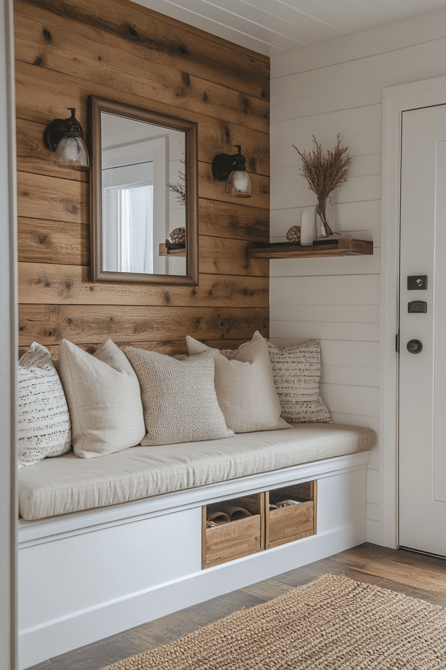Entry zones improve the functionality of tiny cabins interiors by keeping daily essentials organized from the start. Wall hooks and slim seating provide practical storage solutions. Mirrors help expand the visual space. Small baskets keep items tidy and accessible. The entry feels clean and welcoming. Design an entry area that keeps your cabin running smoothly.