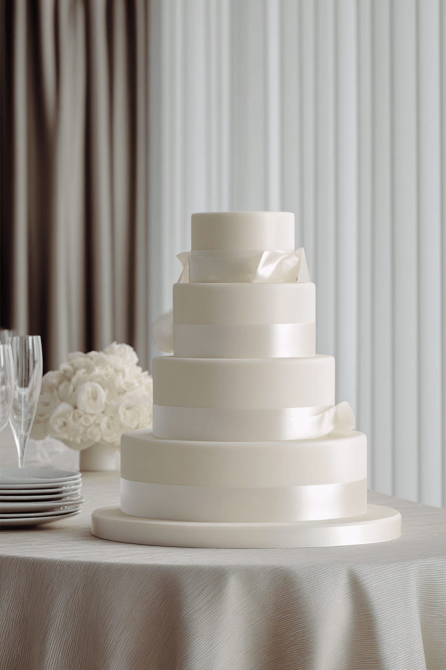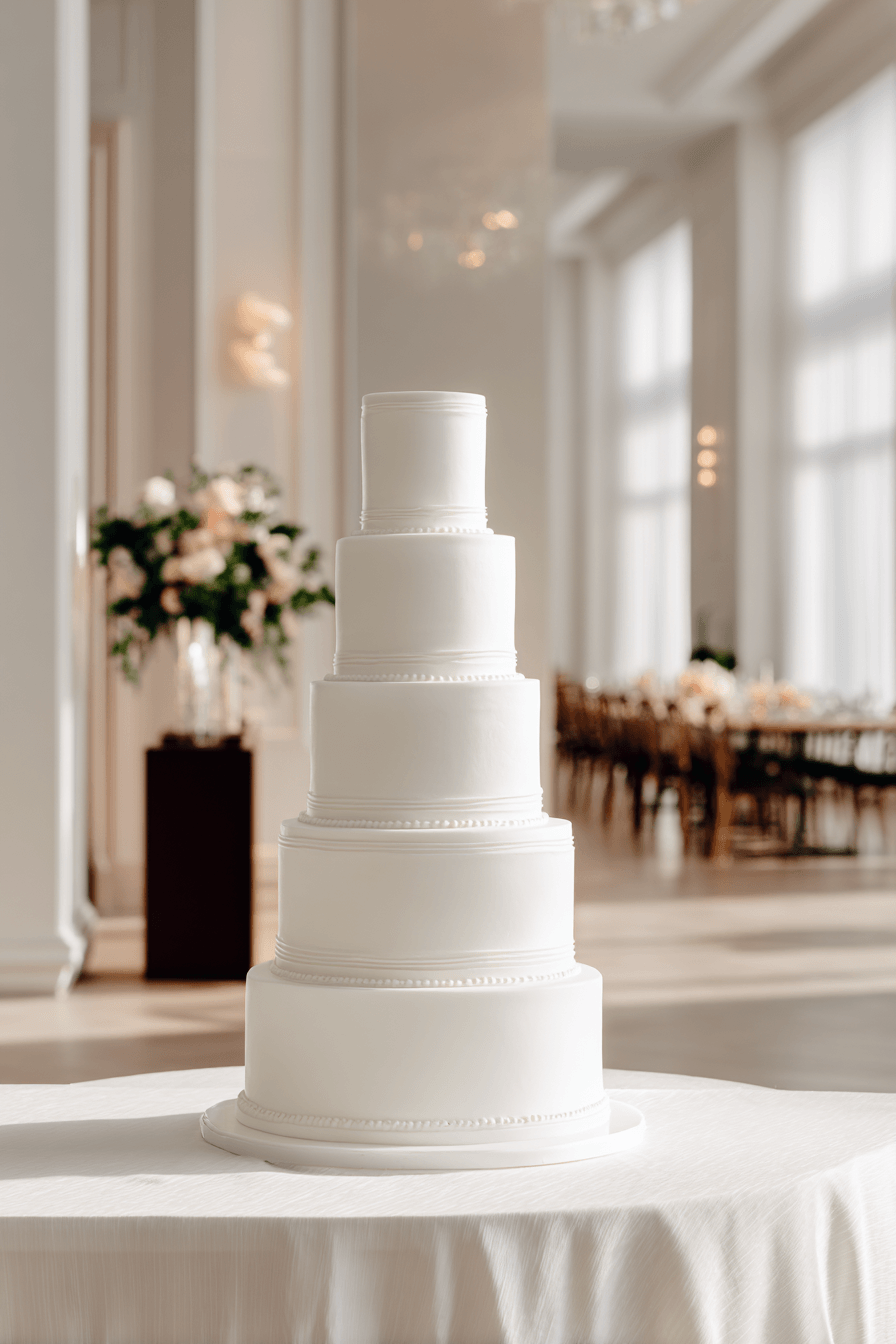 Soft band accents introduce structure into traditional wedding cakes ideas with clean lines and refined detailing. Smooth wraps around each tier create a tailored finish. Gentle color variations add subtle contrast. The design feels balanced and polished throughout. Each element works together seamlessly. Discover how band accents elevate classic cake styles.