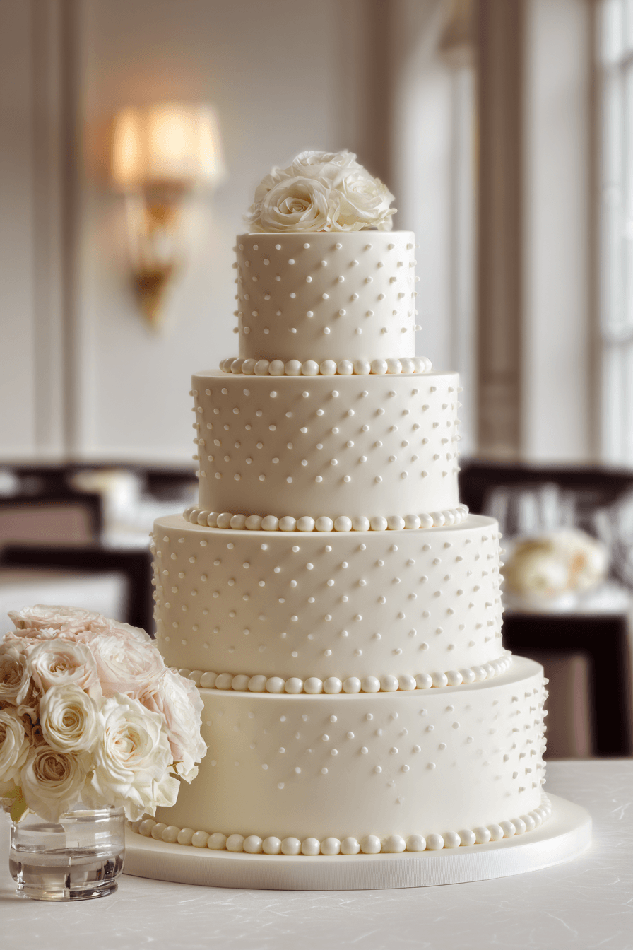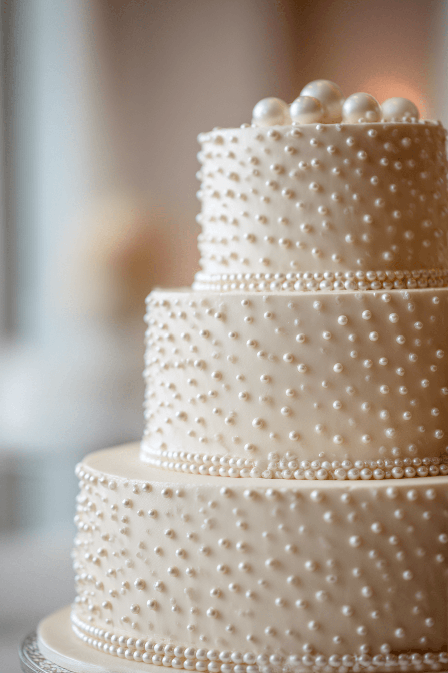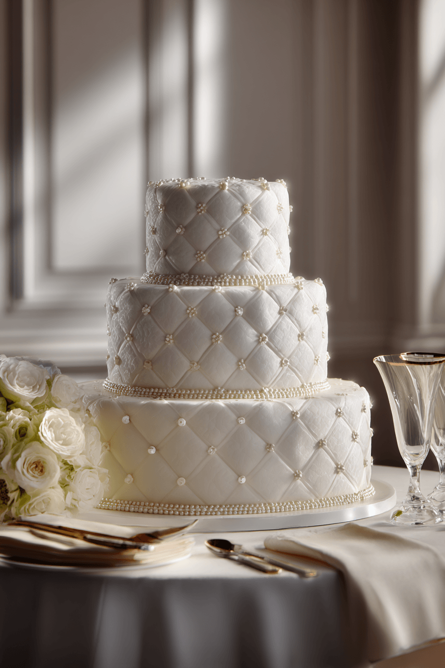 Precise beadwork finishes traditional wedding cakes ideas with delicate patterns that create rhythm and elegance. Repeated detailing adds texture without overwhelming the design. Soft tones keep everything cohesive and refined. Each tier looks polished and intentional. The overall effect feels timeless and graceful. Discover beaded accents that complete classic cakes.
