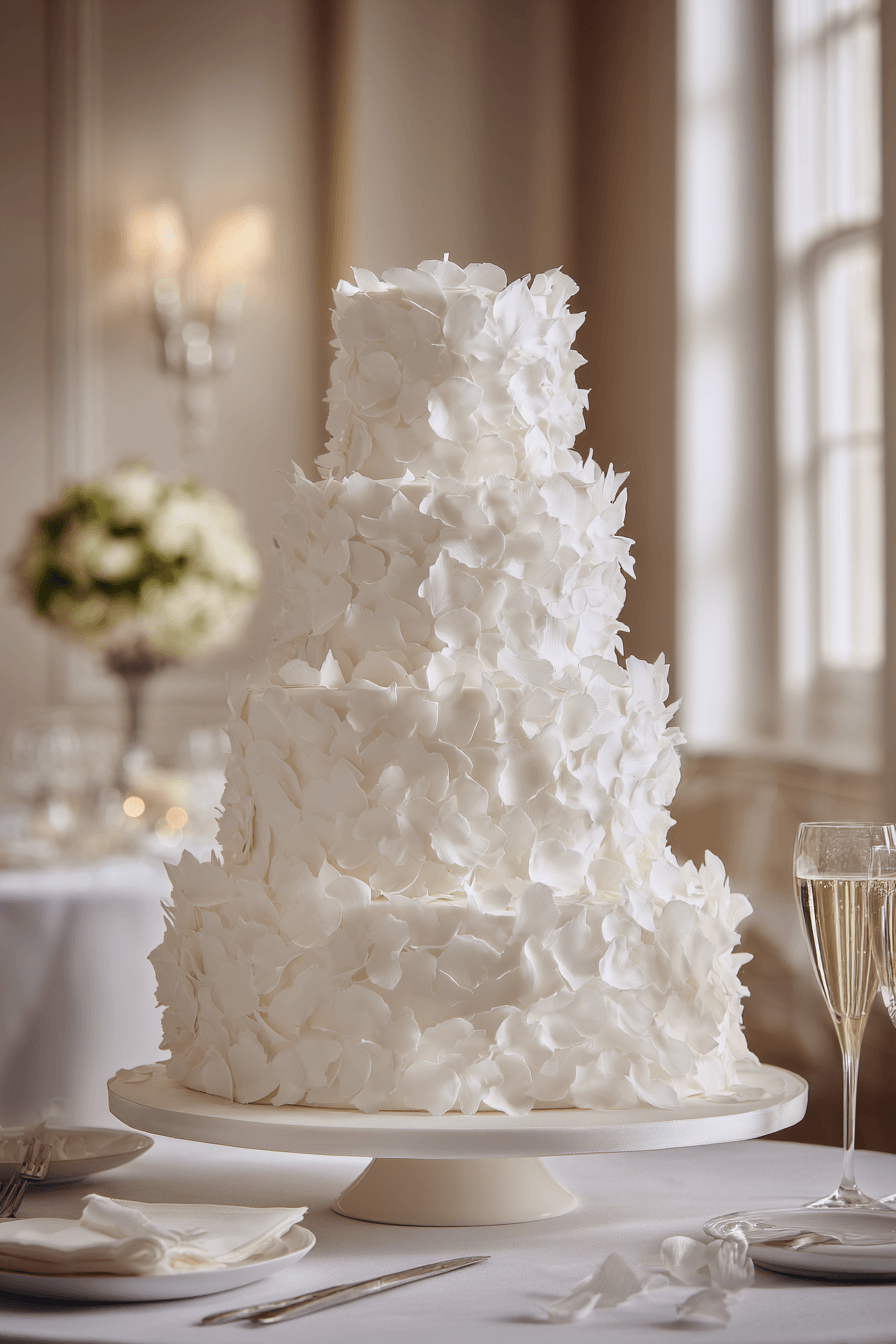 Petal-inspired detailing softens traditional wedding cakes ideas with layered designs that mimic blooming flowers. Gentle shaping adds depth and texture. Soft tones keep the look cohesive and elegant. The design feels romantic and timeless. Each tier gains a delicate, natural feel. Explore petal-inspired cake designs full of charm.