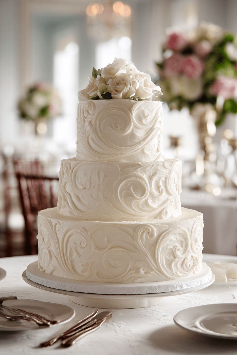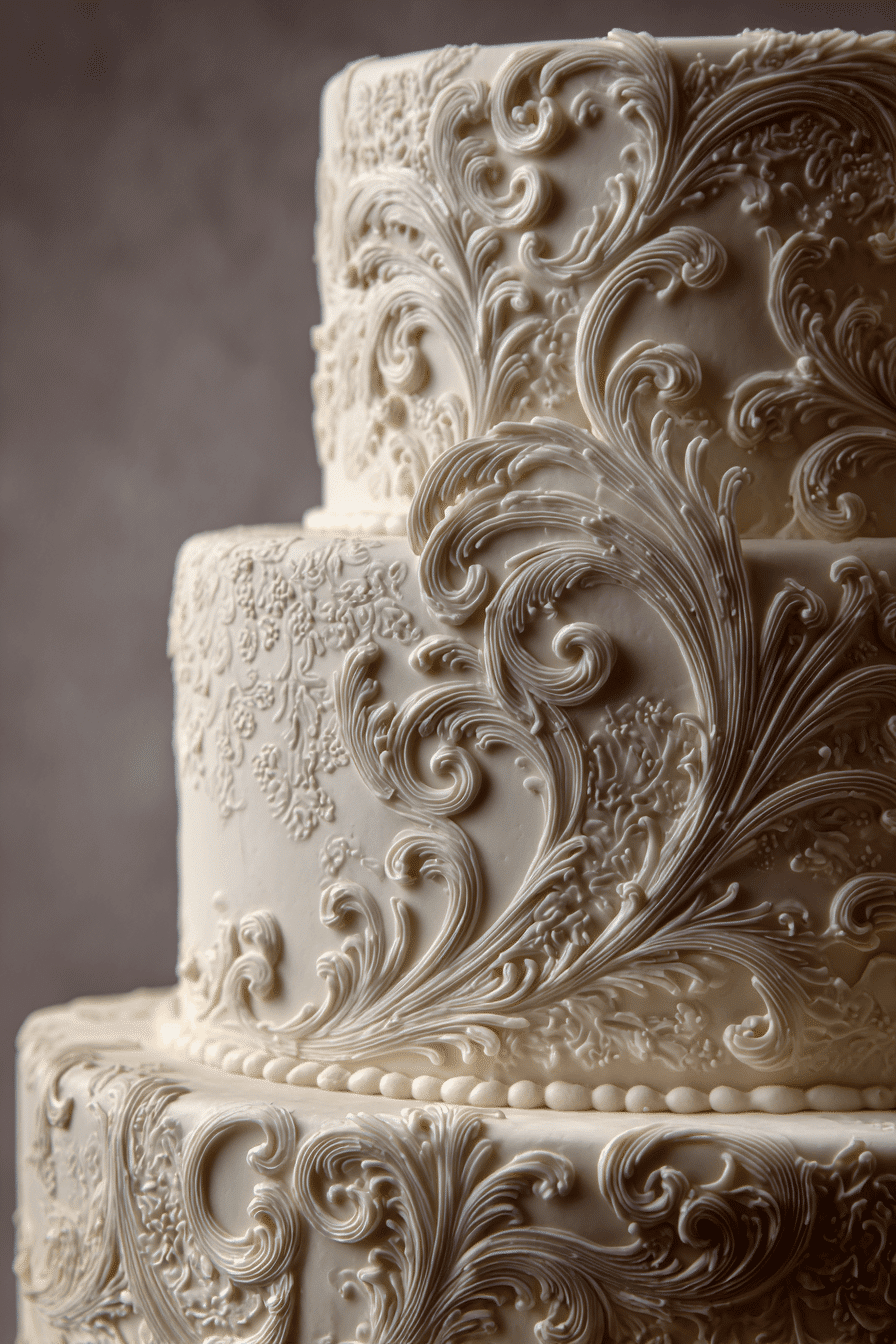 Fine icing techniques highlight craftsmanship in traditional wedding cakes ideas through intricate detailing and raised patterns. Each element adds depth while maintaining a soft appearance. Neutral tones keep the design timeless and elegant. The artistry becomes the main visual feature. Every detail feels precise and intentional. Discover delicate icing techniques that enhance classic cakes.