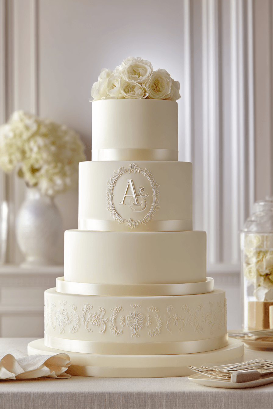 Personal touches shine in traditional wedding cakes ideas with custom initials that add meaning and charm. Clean monogram designs create a strong focal point. Subtle textures enhance the personalized detail beautifully. Each element feels intentional and connected to the couple. The design remains timeless while telling a story. Discover ways to personalize your wedding cake with style.
